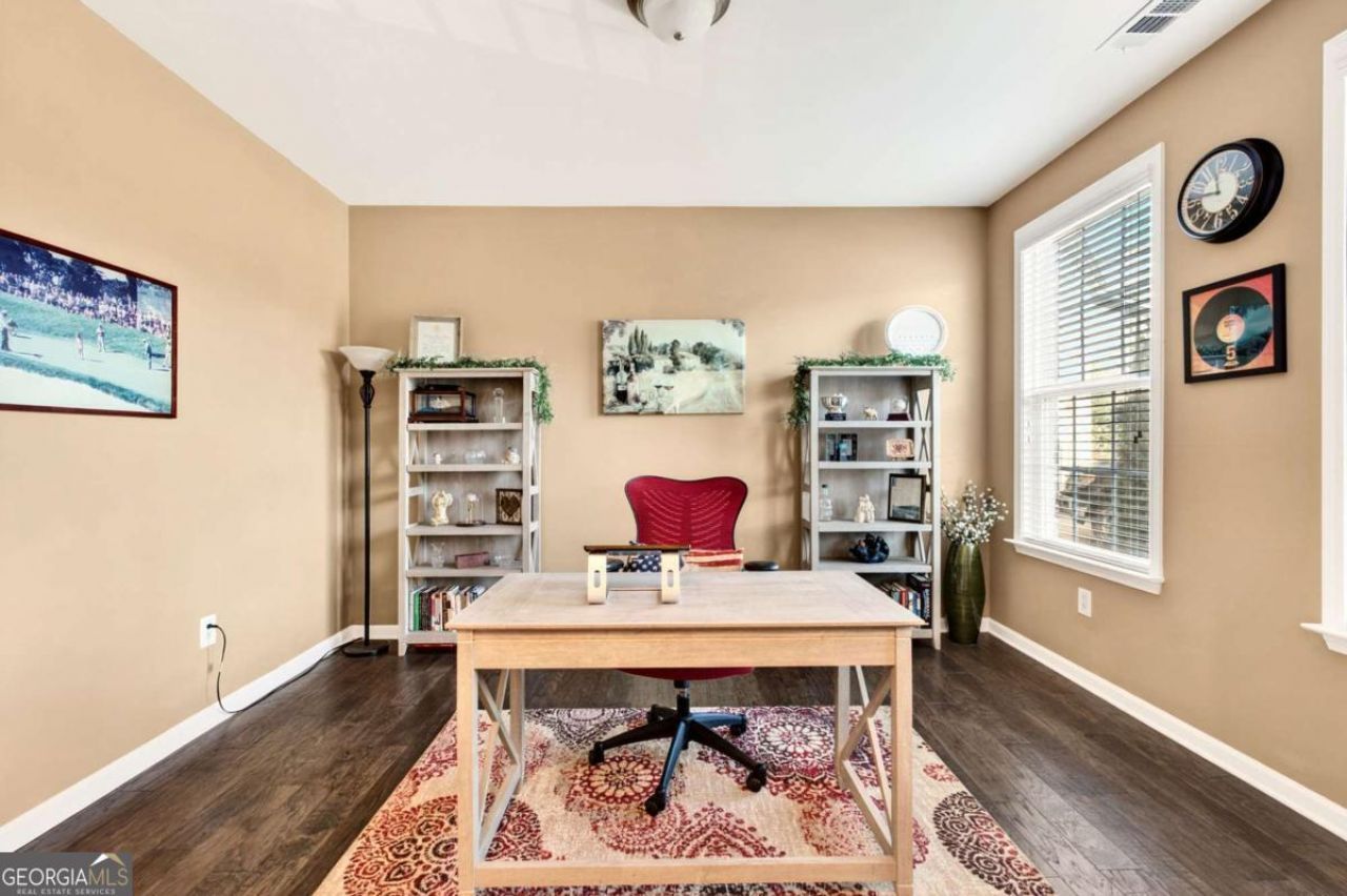 Welcome home to this stunning, meticulously maintained residence located in the highly sought-after Claremore Manor - By Ashton Woods. This exquisite property offers an ideal blend of functionality and luxury, featuring four generous bedrooms and 3.5 bathrooms. Step inside to discover the heart of the home: a spacious island kitchen designed for entertaining, featuring beautiful quartz countertops, custom cabinetry, a convenient walk-in pantry, and a wine refrigerator-perfect for hosting gatherings. Flowing seamlessly from the kitchen, the open-concept design leads to an inviting living room and a walk-out, screened-in patio, ensuring effortless entertaining. A formal dining room plus a sophisticated office adorned with brick accent archways, adds versatility to your living space. As you ascend to the upper level, an expansive master bedroom suite greets you with generous space and a captivating walk-in closet. The opulent master bath features exquisite quartz countertops, an oversized soaking tub, and a lavishly large shower, creating a spa-like retreat for relaxation. Completing the mid level, you'll find three elegant secondary bedrooms, two of which share a thoughtfully designed hallway bath. Additionally, there is an extra-large guest bedroom with a private full bathroom, ensuring comfort for all visitors. Each bedroom boasts spacious, oversized closets, providing ample storage and enhancing the overall functionality of this luxurious home Venture upstairs to the third floor and find a fabulous loft/flex area ideal for recreational use or play area. The luxury continues outdoors with an entertainer's dream-an enclosed, screened-in walkout patio that seamlessly connects to an open deck area, perfect for grilling and al fresco dining. Conveniently located just a stone's throw from Roswell and minutes from vibrant downtown Woodstock, this home offers not only luxurious living but also an enviable lifestyle. With access to excellent schools, exceptional dining, shopping, and entertainment options, this property is a true gem. Experience the perfect blend of comfort and elegance in your new home!
