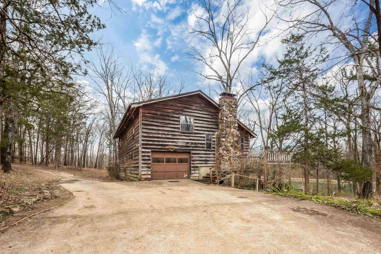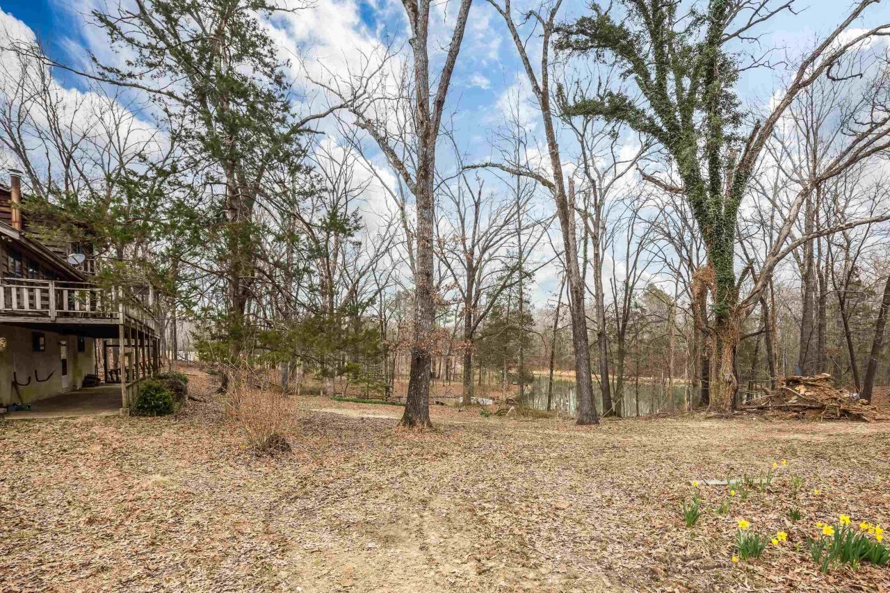 Tucked in the woods upon 2.3 acres with a private pond, gazebo w/fireplace, and water view of neighbors pond this Tri-Level home w/full walk-out basement offers over 2600 sq ft ~ 3200+ total sq ft ~ includes 15X45 heated & cooled 2 car garage and indoor workshop. Large vaulted great room w/wood beams, stone gas fireplace, built-in bookcases and cabinets then lead to the first tri-level staircase where you will find 2BR/1BA. Continue up to top level for the Primary bedroom w/walk-in closet, full bath, walk-out balcony overlooking pond. Head back down to enter into the Kitchen / Dining Combo with doors leading to the screened in balcony porch for backyard pond view. Area for washer/dryer. Head down to the walk-out basement w/additional 16X16 unfinished room. Head partially back up to the indoor workshop and 2-car garage. Property pending survey, being sold As-Is, Seller has never occupied property and has No knowledge of any home details, Recorded Driveway & Well Easement.