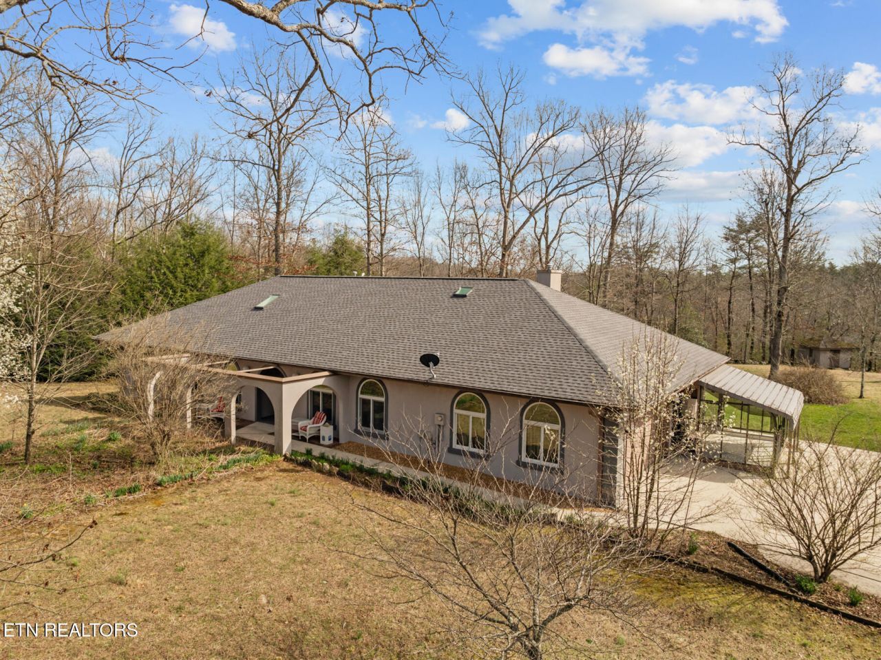 Welcome to the Wildwood Subdivision. Take a drive though it and when you've fallen in love with it (And trust me - you Will), cruise back on to Tanglewood Trail and experience one of the more incredible settings you'll see. On a private cul de sac at the complete end of the road, you'll be greeted by the most grand arched entryway that takes you into your own private oasis. The 2.7 acres is surrounded by woodlands and they couldn't have picked a more perfect place to position the home. It's perched onto a perfectly level spot with a beautiful front yard and an equally inviting back yard with a covered back porch and Gazebo entertainment area with its own firepit for those cool evenings. And wait until you see the architectural interest they've built into the home with arched walls that not only compliment the home but also carries the theme of the arched entryway. It's just brilliant and unique. Your expectations by the time you get to the front door are obviously high, but don't worry, the home will definitely impress you!!! Features include huge Master Bedroom, Bath, and Walk-In Closet, Great Room with massive windows along with Skylights that make the place light and inviting, Wonderfully appointed Kitchen with Natural Gas Cooktop, attached Green House/Solarium, Workshop and Storage Building, and you'll love the windows all along the back wall that looks out onto the covered back patio area. Two bedrooms on the main level with a bonus room (or 3rd bedroom) upstairs and three baths in total. Brand new roof and Skylights August, 2025. My photographer is one of the best, but even his pictures don't do this home and setting justice. You just need to see it to experience it.