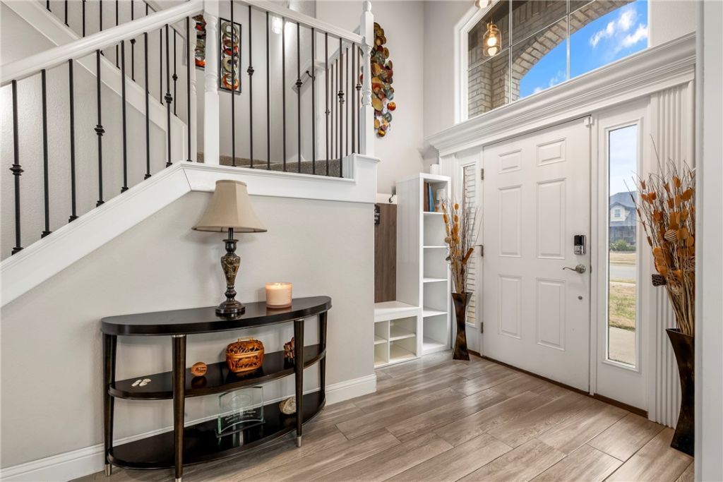 Searching for a 4-bed home in Centerton near Bentonville schools with modern upgrades & convenient access across NWA? Welcome to this beautifully built brick home offering 2,381 square feet of thoughtfully designed living space on a 0.25 acre lot. The living room makes an immediate impression with a soaring cathedral ceiling, gas log fireplace, & seamless flow into the dining & kitchen areas, creating an inviting space for everyday living & entertaining. The kitchen features stainless steel appliances, a 5 burner gas range, soft close cabinetry & generous pantry storage. The main level primary suite offers dual vanities, dual walk in closets, a whirlpool soaking tub, & a walk in shower. Upstairs bedrooms feature cathedral ceilings, walk in closets, & access to two walk in attic storage areas. Smart home upgrades include Ring security & Nest thermostats. Outdoor living includes a covered patio with ceiling fan & TV, gas firepit, fenced yard, & a 10x10 storage shed. Located about 15 minutes from downtown Bentonville.
