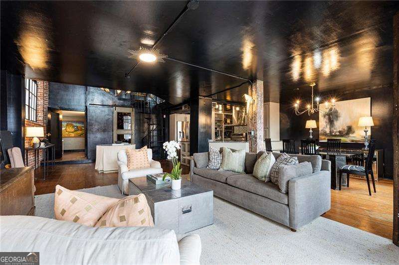 Discover the pinnacle of urban sophistication in this award-winning corner unit at Walker Street Lofts, owned twice by professional interior designers. This unique loft in the Castleberry Hill community is being offered on the open market for the first time in 10 years; it sold privately the last two times. As a featured 2 time winner of the Castleberry Hill Loft Tour, this residence pairs authentic industrial character-think exposed brick, original heavy timber post-and-beam construction, and original steel loading dock doors-with high-end, modern luxury. The ground-level walkout design offers a rare sense of privacy, featuring its own expansive outdoor deck that creates a seamless transition between your sleek interior and the vibrant neighborhood pulse. The heart of the home is a completely redesigned gourmet kitchen, featuring stunning quartzite stone countertops, a premium chef's oven, and designer lighting that replaces standard track fixtures. The open-concept living area, anchored by wide-plank hardwood floors, is bathed in natural light from abundant corner windows and elevated by meticulously placed sconces and picture lights. Both bathrooms have been fully transformed with timeless marble flooring and countertops, offering a spa-like retreat within the city and upgraded custom closet systems for ample storage. Practicality meets luxury with two designated parking spaces in a secure garage, and a rare private storage unit. Perfectly positioned for the ultimate Atlanta lifestyle, you are within easy walking distance to Mercedes-Benz Stadium, State Farm Arena, Centennial Yards and Pedestrian Bridge connecting to the transformative South Downtown redevelopment. Residents also enjoy a semi-private rooftop deck with skyline views. Whether you're an entertainer or a lover of historic architecture, this ultra-cool loft offers a value and aesthetic that is truly unmatched in the heart of Georgia's premier arts district. Welcome home to authentic Castleberry Hill living! Pre-listing inspection was completed. Check out the tours here https://castleberrylofttour.com/past-lofts/ or https://www.instagram.com/p/DDj32JwuMLj/?igsh=NGhwZmE5bzJsemQ=