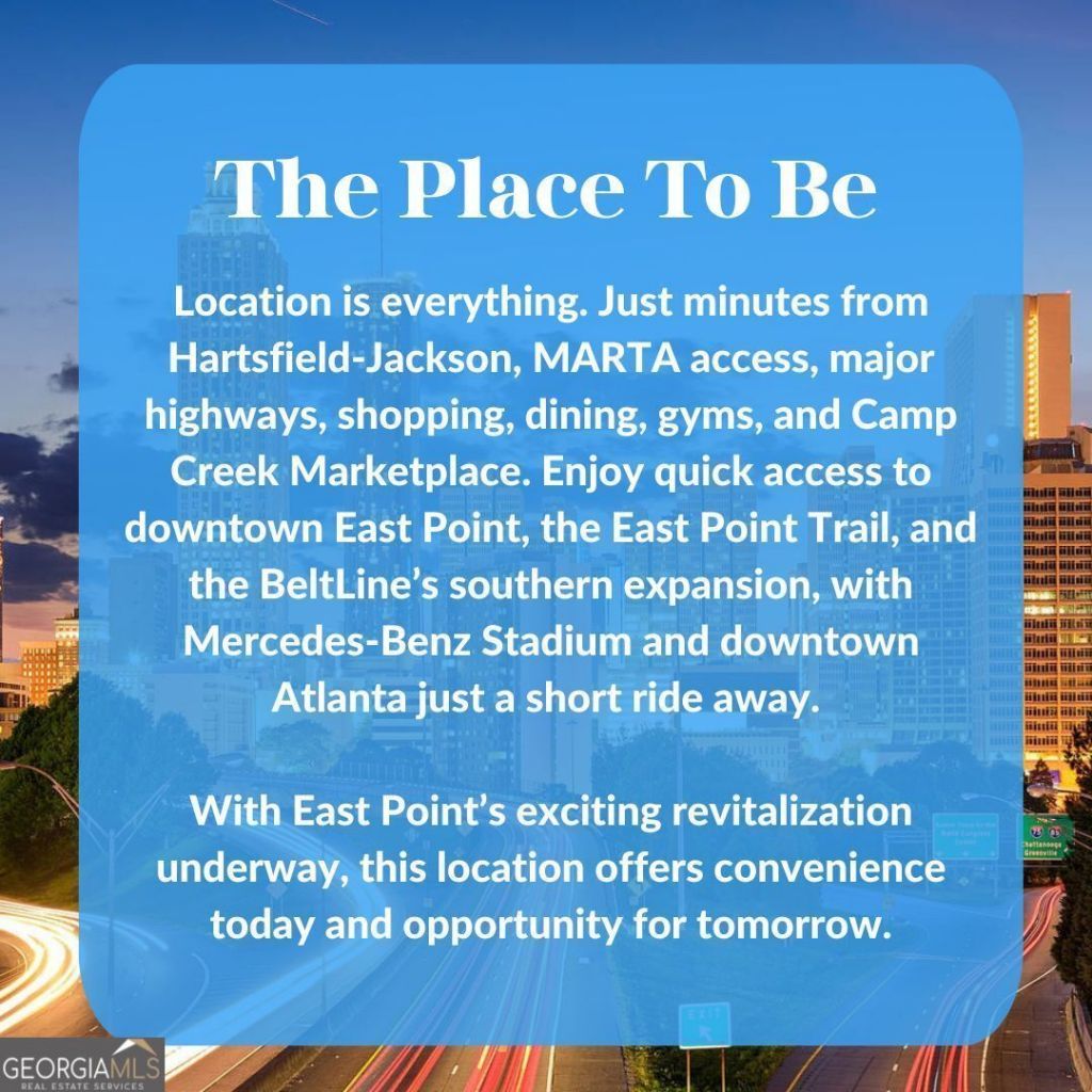 || INVESTOR OPPORTUNITY || NO HOA || NO RENT RESTRICTIONS || FULLY RENOVATED (2022) || SINGLE-LEVEL RANCH || PRIME EAST POINT LOCATION || Opportunities like this in East Point do not come around often. This TENANT-OCCUPIED SHORT SALE offers a rare chance to secure a fully renovated, income-producing property in a rapidly growing area. Showings are available ONLY SATURDAY & SUNDAY FROM 9-12. Inside, the home was fully renovated in 2022 with modern updates throughout, giving you the confidence of major improvements already completed-including a NEW ROOF. The ranch-style layout offers true SINGLE-LEVEL LIVING with 3 bedrooms and 2 baths, including a spacious primary suite with ample room and comfort. A carport and FENCED YARD add both convenience and privacy. Located in the City of East Point, this property sits in a convenient location close to local dining options, a nearby food hall, and easy access to the West End area with new and upcoming development. Outdoor enthusiasts will appreciate proximity to the East Point PATH multi-use trail for biking and walking, as well as the Dick Lane Velodrome at Sumner Park-one of the area's most unique local cycling destinations. You're also minutes from Downtown Atlanta, Hartsfield-Jackson Airport, I-285, I-85, Camp Creek Marketplace, restaurants, shopping, and public transportation. With NO HOA AND NO RENT RESTRICTIONS, the flexibility here is unmatched-whether you're expanding your portfolio or securing a strategic long-term hold in a high-demand corridor. Strong location. Updated condition. Built-in tenant. This is the kind of value-driven opportunity investors wait for.