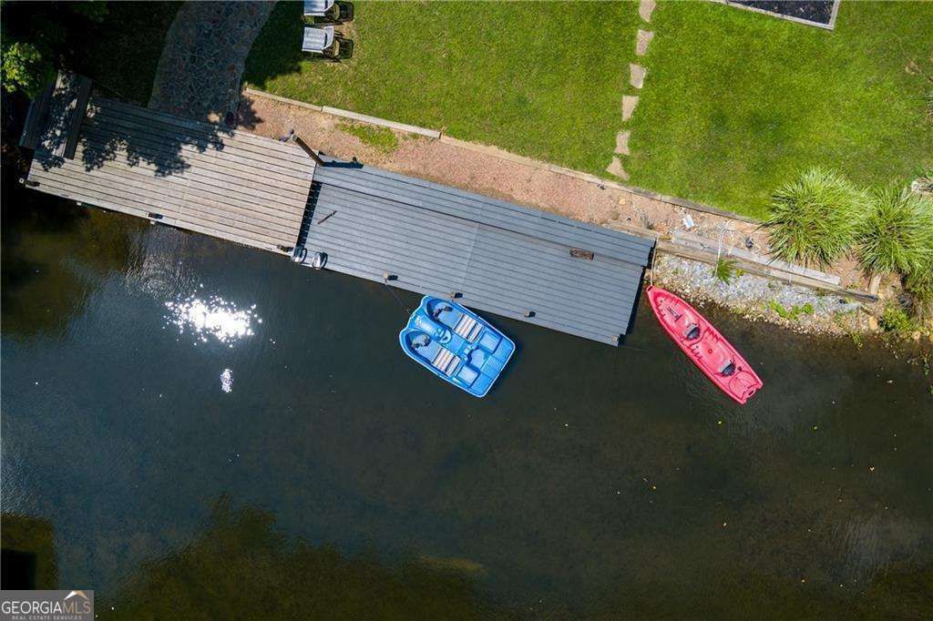 Unique Opportunity to own a flat lot right on the water's edge of Lake Arrowhead. This home is more than a retreat-it's a lifestyle. Whether you're looking for a weekend escape, a full-time residence, or one of the few homes in Lake Arrowhead with rental potential, this property offers the perfect balance of tranquility and convenience. Imagine mornings sipping coffee on your NEWLY built and painted deck, taking in breathtaking water views, and evenings gathering around the fire pit and hot tub under a starlit sky. With its flat lot, the property offers endless possibilities-whether it's launching kayaks, setting up a volleyball net, or simply enjoying the wide-open space. Inside, recent updates shine, from the NEW sleek QUARTZ countertops and backsplash & newly painted cabinets in the open-concept kitchen with contemporary finishes to the cozy living spaces filled with natural light and panoramic lake views. The main floor features tons of living space, a stone fireplace, a MAIN LEVEL full bathroom and bedroom, formal dining, laundry, & so much more. Upstairs features an oversized Primary Suite overlooking the lake and two large secondary bedrooms and guest bath. The finished walkout terrace level features a large bedroom and full bathroom, secondary living space, game room, and tons of storage space. The flat yard overlooks the Lake where you can drop in a kayak or pontoon from the double dock. NEW Deck, NEW Exterior Paint, NEW kitchen countertops/backsplash/painted cabinets, NEW Hot Tub. Option to sell fully furnished. Lake Arrowhead offers 18-hole Golf Course, Clubhouse, 2 pools, 13 hiking trails, playground, restaurant, church and many social events.