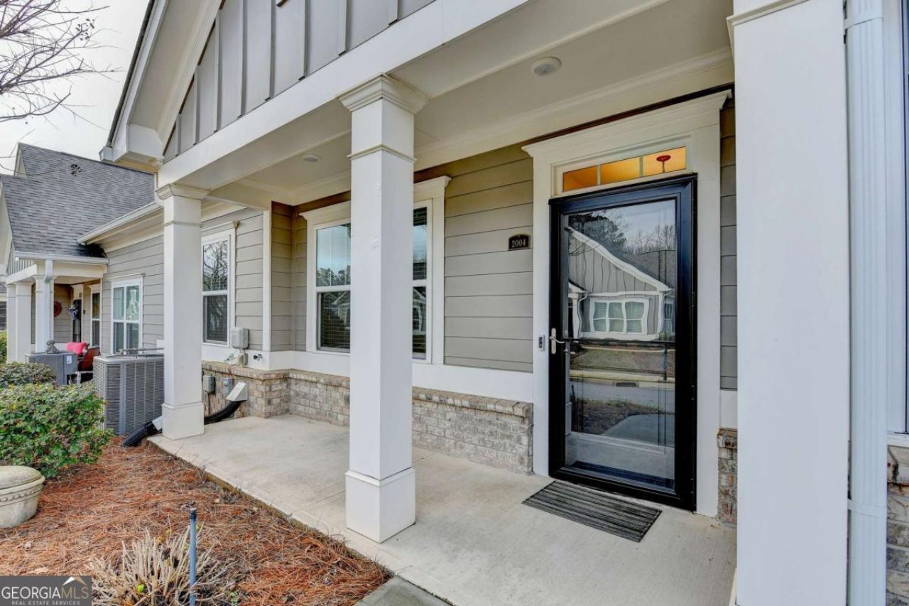 Welcome to this charming 2 bed, 2 bath Craftsman-style END UNIT ranch with 2 CAR GARAGE, located in the sought-after 55+ community of Orchards of Central Park. Relax on the inviting rocking chair FRONT PORCH before stepping into the foyer and bright, open floor plan. The spacious living room offers a beautiful FIREPLACE with marble tile surround and custom built-in cabinetry, creating a warm and elegant gathering space. The family-sized DINING room, accented with crown molding, flows seamlessly into the kitchen-perfect for entertaining. The well-appointed kitchen features abundant custom cabinetry, QUARTZ countertops, STAINLESS STEEL APPLIANCES, eat-in ISLAND with wood panel accents, GAS RANGE, tile backsplash and a huge WALK-IN PANTRY. Just off the kitchen is a large LAUNDRY ROOM with a utility SINK and convenient access to the 2-CAR GARAGE. The master suite is a peaceful retreat with a tray ceiling, ceiling fan, hardwood floor and a luxurious ensuite bathroom that features custom cabinetry, double vanity with granite countertop, tile flooring, an oversized SHOWER WITH A BUILT-IN BENCH and spacious WALK-IN CLOSET. The secondary bedroom also features a tray ceiling and opens to the well-appointed hall bathroom with custom cabinetry, granite countertops, tile flooring and a tub/shower combination, making it perfect for GUESTS or as an OFFICE. Enjoy year-round relaxation in the ALL-WEATHER SUNROOM, complete with tile floor and newly-installed COOL SCREENS, allowing you to take in the peaceful surroundings while staying comfortable in EVERY SEASON. Perfect for morning coffee, reading, or entertaining guests while enjoying views of the outdoors. Upstairs, a partially finished LOFT AREA provides flexible space for a home office, hobby room, or STORAGE SPACE. FRESHLY PAINTED, HARDWOOD FLOORS THROUGHOUT, immaculately maintained, looks and feels BRAND NEW! The HOA takes care of ALL EXTERIOR PAINTING AND MAINTENANCE, ROOF REPLACEMENT, AND WEEKLY LAWN CARE, making maintenance easy and stress-free. The community features an impressive CLUBHOUSE, and a SALTWATER POOL. The clubhouse offers multiple amenities, including a spacious main gathering room with an open KITCHEN, a private MEETING SPACE, a FITNESS ROOM, and convenient poolside CHANGING and SHOWER FACILITIES. Expansive green spaces throughout the community provide plenty of room for relaxing strolls or walking your dog. Located just off GA 400, The Orchards of Central Park offers outstanding convenience with easy access to RESTAURANTS, SHOPPING, MEDICAL FACILITIES and ENTERTAINMENT. The community sits next to Central Park, one of Forsyth County's premier municipal parks, with a SIDEWALK PROVIDING DIRECT ACCESS-NO DRIVING REQUIRED. Residents can enjoy pickleball, tennis, walking and biking trails, athletic fields, playgrounds, and a full recreation center. Plus, grocery stores, dining, and shopping are all just minutes away. This beautiful home blends comfort, style, and low-maintenance living in an active adult community. The perfect place to call home!