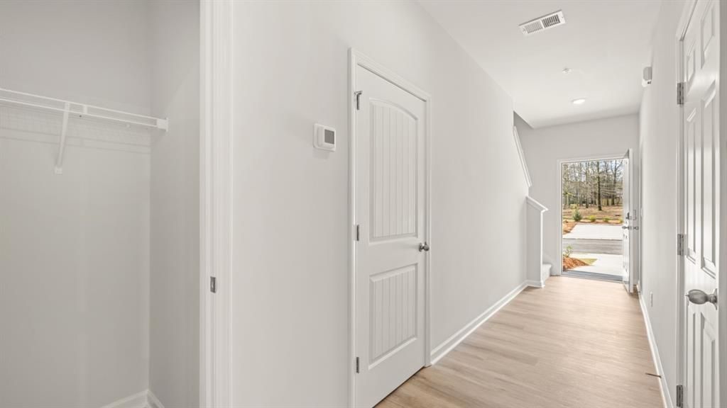 Welcome to 2012 Roseleigh Drive in Douglasville, GA. The Pearson II two-story plan features 3 bedrooms and 2.5 bathrooms in 1,508 square feet along with a 1-car garage. As you step off the front porch, a long foyer welcomes you and leads you into the main living area as you pass by a half bathroom in the front hallway. The large living room is the perfect space for family and friends to gather or for a quiet night with a movie or book. Enjoy easy access to the back patio where you can relax with coffee in the mornings. The living room flows seamlessly into the contemporary designed kitchen with an attached island, white cabinets, and granite countertops. Homeowners will appreciate the durable, laminate wood flooring throughout the main level, that is perfect for any active household. Up the stairs you'll turn from the landing into the primary suite. A spacious bedroom is complimented by the en suite bathroom featuring a granite topped, dual vanity and roomy walk-in closet. Across the landing you'll be led into one of the two additional bedrooms, both with walk-in closets. The laundry room and an additional bathroom round out the upper floor. Call us at Roseleigh Park today to see the Pearson II at 2012 Roseleigh Drive in Douglasville, GA in person! By Appointment Only Mondays & Tuesdays.