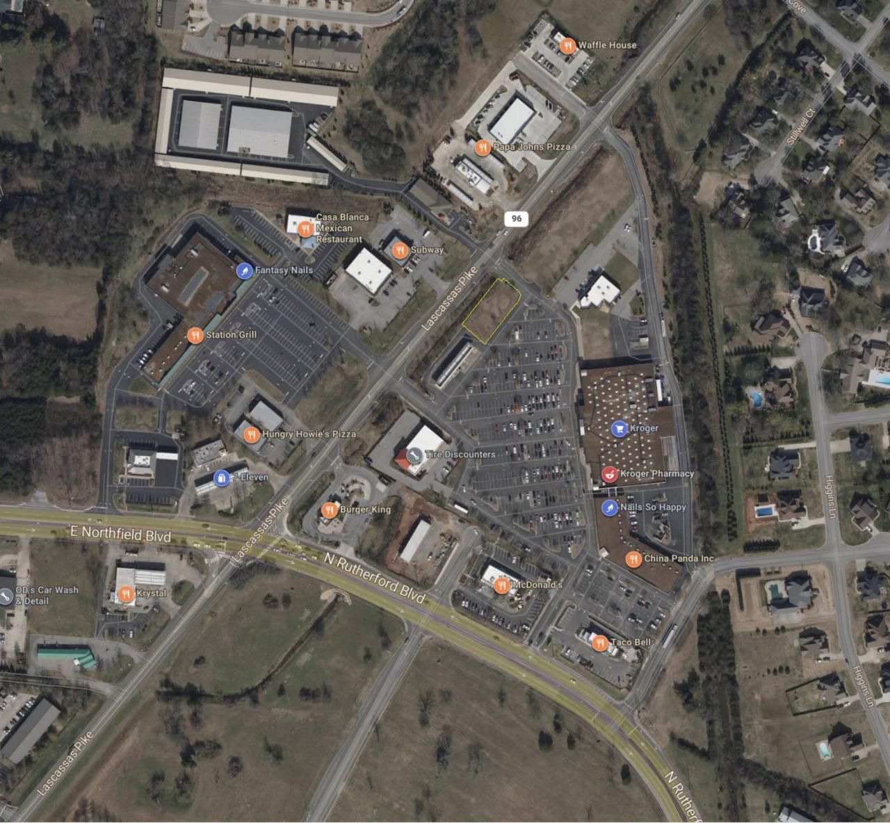 Kroger Outparcel Located directly on Lascassas PikeGreat performing Kroger shopping center drawing in customers from all over Rutherford county17,000 daily road count on Lascassas PikeExcellent spot for drive through coffee and drive though focused QSRUse subject to Kroger Covenants (no grocery, fuel, drug store)