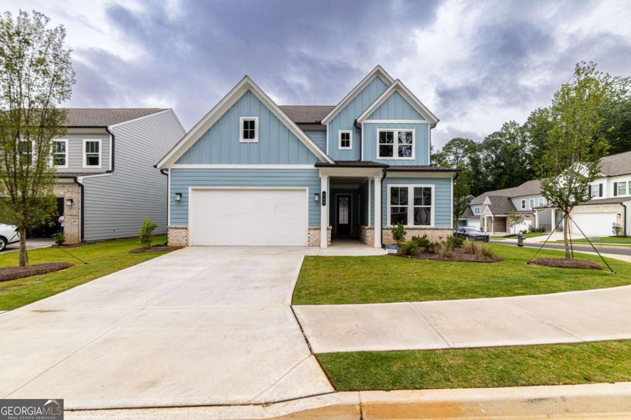 212 Birchwood Row is a Brand-new, never lived in, and utterly stunning, this two-story corner lot showpiece in Holly Springs showcases the expansive Kendall floor plan-the largest in the community-with a versatile layout offering 4 bedrooms and 3.5 baths, designed to impress from the moment you step inside. Sunlight pours through oversized windows, illuminating the open family room anchored by a sleek fireplace with remote control and a designer kitchen that is every entertainer's dream, complete with a massive quartz island accented by three striking glass pendants, crisp white cabinetry, and stainless steel appliances including the refrigerator. The main level offers a secondary owner's suite with a spa-inspired bath featuring dual vanities and a tiled shower, perfect for guests, along with a private study or office and a stylish half bath for convenience. Upstairs, a spacious loft provides endless flexibility for a media lounge, playroom, or second living space, while the oversized owner's retreat delivers the ultimate escape with a freestanding soaking tub, a separate tiled shower, dual vanities, and an oversized walk-in closet designed to impress. Two additional bedrooms share a thoughtfully designed bath with double vanities, and the laundry room is smartly placed on this level to simplify daily living. With abundant closet space, a private back patio, and a two-car garage, every detail of this home has been carefully crafted for style and functionality. Set within the sought-after Enclave at Edgewater, you'll enjoy the benefits of top-rated Cherokee County schools and an amenity-rich community. Just minutes from I-575, Downtown Woodstock, Canton Marketplace, Hickory Flat Commons, Sequoyah Park, and the exciting new Holly Springs Town Center with its upcoming amphitheater, dining, shopping, and entertainment, this address blends small-town charm with modern convenience. Sophisticated, versatile, and undeniably elegant, 212 Birchwood Row is more than a home-it's a lifestyle waiting for its very first owner.