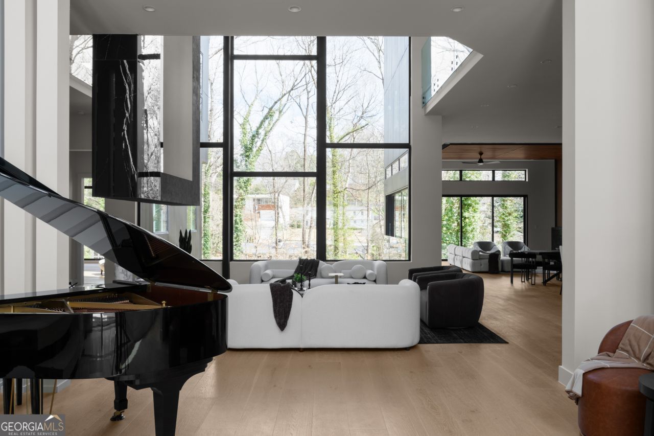 A rare architectural statement in the heart of Oak Grove. This newly constructed modern estate offers an extraordinary balance of scale, design intelligence, and long-term value. Thoughtfully conceived for discerning buyers who appreciate both aesthetic precision and functional sophistication. The Double Primary with a terrace level, residence unfolds with a dramatic two-story foyer opening into dual double-height living spaces, glass railings anchor the floating staircase and lends itself to seamless and intentional composition of natural light, unobstructed views and architectural presence, wide-plank 7 hardwood flooring throughout the home perfectly anchor the space. A glass-enclosed 120 bottle wine vault couples perfectly with a sleek fireplace, positioned as a visible design feature from the entry, serves as both fine art and amenity. The main living room is anchored by a tiled custom built floating fireplace and integrated bar, creating a refined yet inviting setting for entertaining with a subtle and artful separation between the bar area and the great room. The chef's kitchen is executed with a Thermador professional appliance suite, selected for performance and design. A custom walk-in pantry and custom walnut cabinetry complement the panel ready commercial grade Thermador refrigerator, fully custom cabinetry continues through the kitchen and into the dining area with a custom buffet. Porcelain countertops, a dramatic 14 ft booked-match porcelain island create a refined and durable centerpiece for the kitchen. 30 ft - Panoramic retractable glass doors open to a modern take on Juliette balconies with glass railings and transparent screens, preserving the intentional theme of unobstructed views of your pool and enhancing accommodating indoor-outdoor living. The main level is also strategically designed with three bedrooms, including a nanny or additional guest suite with its own garage and side entry and is kitchenette ready. Steel pane French doors allow an abundance of natural light into the tucked away home office. A secondary primary suite featuring floor-to-ceiling windows, fireplace, spa-inspired bath with dual multi-jet shower heads, and a generous walk-in closet. Upstairs, four additional ensuite bedrooms including the Primary retreat provide exceptional privacy. The Primary Suite is a sanctuary, complete with massive sliding glass doors leading to a private balcony, a sculptural translucent soaking tub, oversized dual shower heads, dual water closets, LED-illuminated vanities, a most expansive boutique-scale custom closets with an ambient lighting package and secondary room inside the suite - ideal for dual closets, a private office and more complete this luxe suite experience. All secondary bedrooms on the upper level are ensuite with generous closets and well appointed premium bathroom finishes. The finished terrace level offers expansive open-concept entertaining space with sliding doors that create a seamless walkout connection to the future resort-style pool, spa, custom fire pit (to be completed post-closing). This level is ideally built out for a private theater, wellness spa, fitness studio, and executive lounge. The backyard is set perfectly to incorporate a putting green and basketball court just beyond the pool. This modern estate is also completed with an EV charging ready garage. Located within the highly regarded Oak Grove community, known for its established estate properties, tree