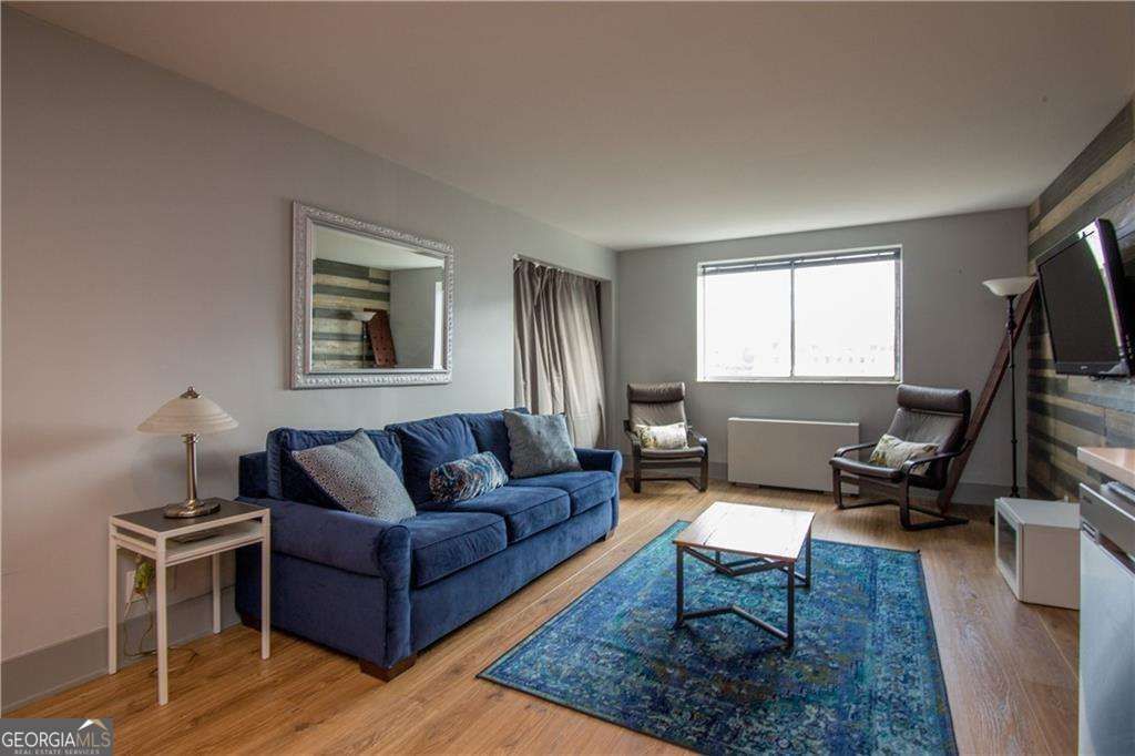 GREAT CASH FLOW, NO RENTAL RESTRICTIONS, SHORT-TERM ALLOWED, renovated one bedroom, one bathroom, living room/kitchen combination, and separate dining room. Fully supplied and stocked. ALL FURNISHING INCLUDED. New luxury vinyl hardwood floors (AquaGuard/Floor & Decor waterproof flooring), private bedroom with premium quality hybrid mattress and sleeper sofa, clean white bathroom, rare in-unit high-efficiency washer & dryer, high-speed internet, blackout blinds & curtains. It is furnished in calming blues, grays, and whites and is stocked to host several people comfortably, and is fully loaded. It features a queen-bedroom suite with a great view of the city. The living area features a rustic, charming real wood accent wall with an adjustable wall-mounted flatscreen TV. The kitchen area is fully stocked with quartz countertops, stainless appliances, and cooking & dining essentials. Building Bylaws allow for any rental lengths and no caps on the number of rentals. Perfect place to invest in a turn-key income generating asset that is already cash-flowing and appreciating at the same time. The Landmark is one of the Downtown Atlanta skyline's most underrated buildings poised for skyrocketing appreciation. The homeowner association fee includes everything: 300 MB Xfinity Internet, Electricity, Heating, Cooling, Gas for cooking Range, Water, Sewer, 24-hour Concierge, plus all the HOA Amenities. One assigned parking space typically $55/night value, onsite 24-hour concierge, small fitness gym, full-size inground pool, and laundry facility available.