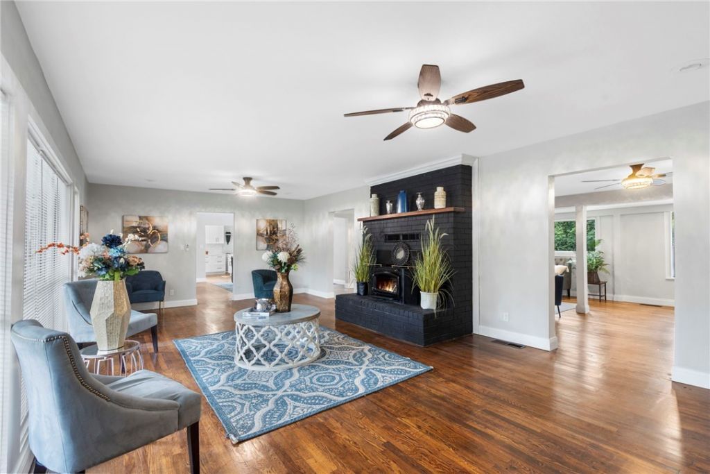 Priced below appraised value with immediate opportunity for value. Move-in ready with real hardwood floors, updated light fixtures, roof replaced in 2023, and brand-new HVAC. Renovated kitchen features soft-close cabinets, quartz countertops, new appliances, and coffee bar/prep area with secondary sink. Flexible layout offers two en-suites, main living plus second living room/sunroom, formal dining, three full baths, and oversized laundry/mudroom with sink. Covered front porch and great back deck. Situated on 2.16 acres between Rogers and Eureka Springs near lake areas. May suit primary, second home, or short-term rental use.