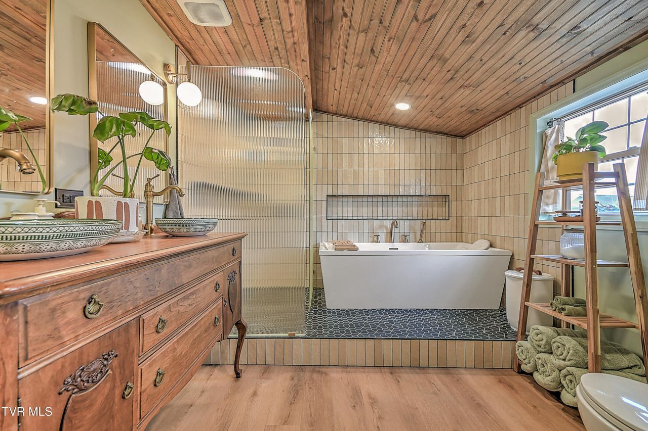 Welcome to 2302 Princeton Lane, a beautifully reimagined home in the heart of Johnson City, perfectly positioned on a quiet non-outlet street that offers privacy while keeping you minutes from everything the city has to offer. This thoughtfully remodeled residence has been redesigned with intention, blending modern style with everyday comfort. Featuring two bedrooms and two full bathrooms, the home showcases a new floor plan that maximizes space and functionality, creating an open and inviting feel throughout.Nearly every detail has been updated, including a brand-new roof, new energy-efficient water heater, and high-quality finishes throughout the home. The custom primary bathroom is truly a standout, complete with a beautifully tiled soaking tub, sleek rain shower fixtures, and modern design elements that feel both luxurious and timeless.Situated on almost half an acre, the outdoor space is just as impressive. The fenced-in backyard provides privacy and room to entertain, featuring a fire pit area, a brand-new deck ready for spring evenings, and plenty of space to relax or host friends and family.Tucked away in a peaceful neighborhood setting yet conveniently close to shopping, dining, ETSU, and all that Johnson City has to offer, this home delivers the perfect balance of seclusion and accessibility. Completely move-in ready and meticulously updated, 2302 Princeton Lane is ready for its next chapter.