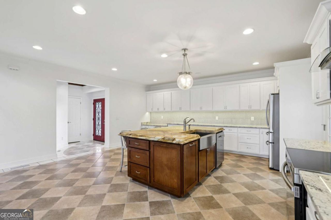 If you've been looking for the ultimate lake spot with infinite potential, this is it! Tucked away on a spacious corner lot in a quiet south Lake Lanier community, this custom-built home offers a perfect blend of style and lake-life convenience. You're just minutes from Bald Ridge Marina and Mary Alice Park, with plenty of room to park your toys-the massive driveway and high-ceiling garage can easily handle all your vehicles, boats, or campers. Inside, the home feels incredibly bright and airy thanks to a two-story living area and an open floor plan flooded with natural light. The kitchen is a true showstopper, featuring brand-new appliances and a gorgeous countertop imported straight from Brazil. You'll find unique character everywhere you look, from the striking custom ceiling beams and twin lofts with a wet bar, to the wine storage hidden underneath the staircase. With bedrooms on every level and a massive upstairs bonus room that could be a game room or guest suite, the layout is as flexible as it gets. Every exit in the house leads to its own private deck, so you're never more than a step away from the fresh air and lake views. Best of all, you can move in with total peace of mind-the roof, HVAC systems, and water heaters have all been recently updated. It's the perfect home base, close to all the shopping and dining at Market Place Blvd and just a quick hop onto GA-400 and everything lake Lanier living has to offer.