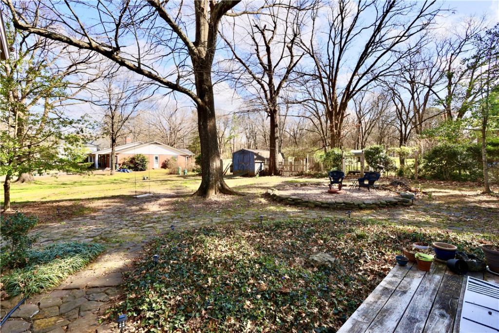 Highly desirable East Fayetteville location just two blocks from Gulley Park. Situated on a large corner lot with mature oaks and pines, this property offers ample space for outdoor additions such as a pool, expanded patio, or garden. The 3-bedroom floor plan has been thoughtfully modified, combining two bedrooms to create a spacious suite with a separate sitting room and closets in both areas. The layout allows for easy conversion back to two separate bedrooms if desired. Backyard features include a large wooden deck and fire pit area ideal for outdoor entertaining. The living room offers a wood-burning fireplace that is already plumbed for gas logs. Recent updates include newer roof, HVAC system (furnace, A/C, and ductwork), gas line from meter, gas range and oven, vent hood with microwave, hot water heater, and washing machine. All appliances convey. Rare opportunity in an established East Fayetteville neighborhood within walking distance to Gulley Park.