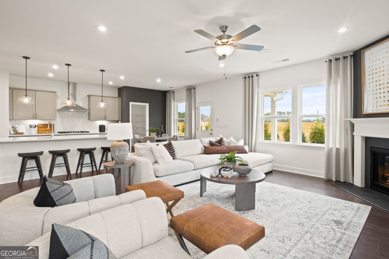 Welcome to Anderson Point Estates! This beautiful new construction home offers a thoughtfully designed layout with stylish upgrades throughout. The primary bathroom features a luxurious stand-alone soaking tub, creating a spa-like retreat. Entertain in the elegant dining room accented by a coffered ceiling, or relax in the gathering room beside a cozy fireplace. The home includes a complete appliance package and provides plenty of space to fit your lifestyle with an open loft and additional flex room. Situated on a large, private lot with a side-entry garage, this home offers both privacy and curb appeal-perfect for comfortable everyday living and entertaining alike. Conveniently situated just minutes from Downtown McDonough Square, Anderson Point offers easy access to premier recreational destinations such as the Georgia National Country Club and Golf Course, Tanger Outlets, Jackson Lake, Heritage Park, and more. Photos are representative of a similar, professionally staged floor plan.