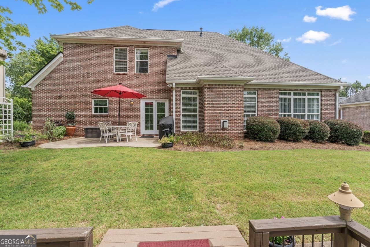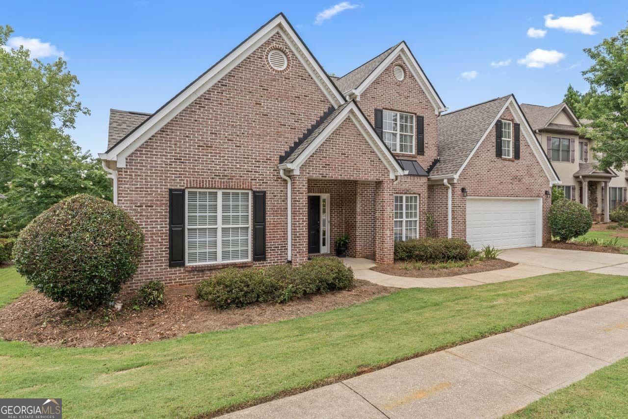 Welcome to life on the golf course inside the prestigious Eagles Landing Country Club, a private gated community offering resort-style amenities. This beautifully updated brick home backs directly to the 15th hole of a 27-hole championship golf course, providing peaceful views and privacy. Step inside to find fresh interior paint in modern neutral tones, updated luxury vinyl plank flooring, and soaring ceilings in the main living areas that create an open and airy feel. The formal dining room greets you just off the foyer, leading into a spacious living room with recessed lighting, stone fireplace and views of the backyard. The white kitchen has been tastefully upgraded with granite countertops, stainless steel appliances, and ample cabinetry. Just outside, enjoy a landscaped patio and wooden deck, ideal for entertaining or relaxing while watching the sunset over the fairway. The primary suite is conveniently located on the main level and features tray ceilings, a sitting area, and a spa-like bathroom with a soaking tub, tile shower, updated vanity, and an oversized walk-in closet. Upstairs, you'll find two additional bedrooms plus a versatile fourth room-ideal as an office or guest room. Enjoy access to all the exclusive amenities of Eagles Landing Country Club: two swimming pools, tennis courts, and a clubhouse with fine dining.