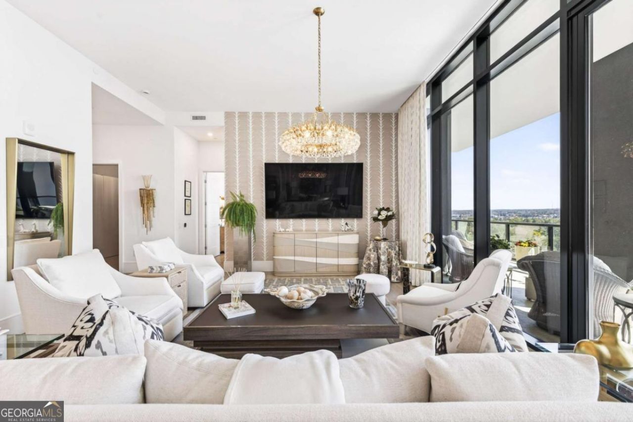 Step into a world of elevated living! This is the sophisticated residence with incredible upgrades that you have been waiting for! This discerning owner added over $600,000 in luxury upgrades after closing! Experience luxury living with modern design in Unit 1704 at The Dillon Buckhead. Soaring 12 foot ceilings with floor-to-ceiling windows overlooking a private, covered terrace with the most stunning views of Downtown Atlanta. Open-concept living room, dining area and kitchen provide the space for entertaining and everyday living. The gourmet kitchen features Quartz counters with a large waterfall center island that seats four, sleek modern Italian cabinetry, custom pendant light fixtures, top-of-the-line Thermador and SubZero appliances, upgraded plumbing fixtures, and a scullery for additional storage and catering space. The office and wine bar are unique features of this home and were thoughtfully built out with custom Pedini Cabinetry. The wine bar boasts a Sub-Zero wine tower, sink, beverage fridge and cabinets for storage. This space is perfect for those that work from home with doors to hide away the office space when entertaining. Custom motorized draperies and blinds, designer wallpaper, stunning light fixtures, rich hardwood floors and tons of natural light are just a few additional highlights. Plus an additional custom Pedini walk-in closet adds to the generous storage in this home. The primary suite has access to the large terrace and an oversized Pedini custom primary closet with no detail left undone (you've got to see this closet!). The primary bath features dual vanities, frameless glass shower with marble tile, upgraded fixtures and a beautiful soaking tub with views of Downtown! Spacious secondary bedroom with ensuite. The Dillon's amenities are unparalleled in Atlanta! True resort-style amenities feature a heated pool and hot tub with private cabanas, large lounging deck, pickleball court, state of the art fitness room, and dog park on level 4. The lobby level features a hidden Speakeasy with outdoor patio, movie room, a golf/game simulator room and individual offices plus a conference room. The massive motor court ensures covered entry for residents and guests. The concierge and valet services complete the seamless lock-and-leave lifestyle. An active coveted community, residents of The Dillon Buckhead enjoy game nights, progressive dinners, movie nights, the speakeasy and easy access to Buckhead and Midtown's dining, shopping, hospitals, schools, parks and more!