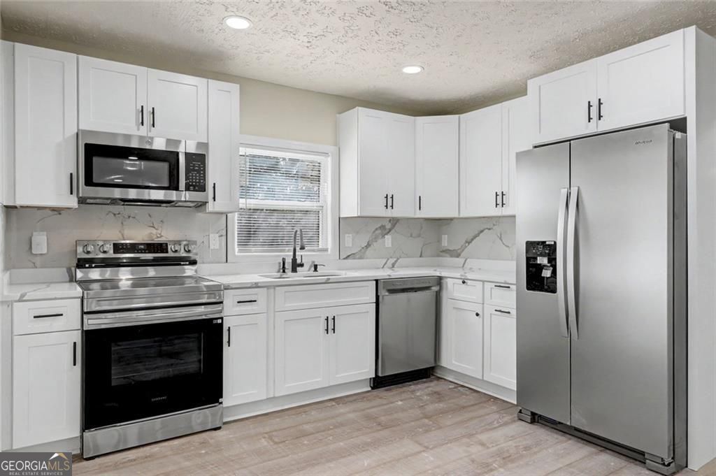 1-year home warranty. Envision a distinguished residential property located at 2447 Omaha Road SW in Atlanta, Georgia, US, presenting itself in great condition as an attractive proposition. Within the residence, the kitchen stands as a central point for daily living, featuring a stylish backsplash, robust stone countertops, and classic shaker cabinets that collectively enhance the culinary experience.