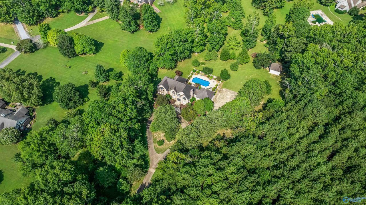 NEW PRICE!!!! Incredible stately home...all brick, sits on over 4 treed acres w/ an in-ground pool & more! Stroll down the long concrete drive and find this castle-like home sitting at the end w/ a circle drive in a park-like setting. Step inside to find a 2-story living room w/ gas log fireplace, kitchen w/ breakfast bar AND breakfast area, formal dining room, BONUS room above the attached garage. Two bedrooms w/ shared bath on the main level as well as a laundry room and half bath. Up the gorgeous curved staircase is a wonderful sitting area / office space and primary bedroom. Gather around the pool and updated deck for grilling & relaxing. Detached garage & cabin that offers many uses.