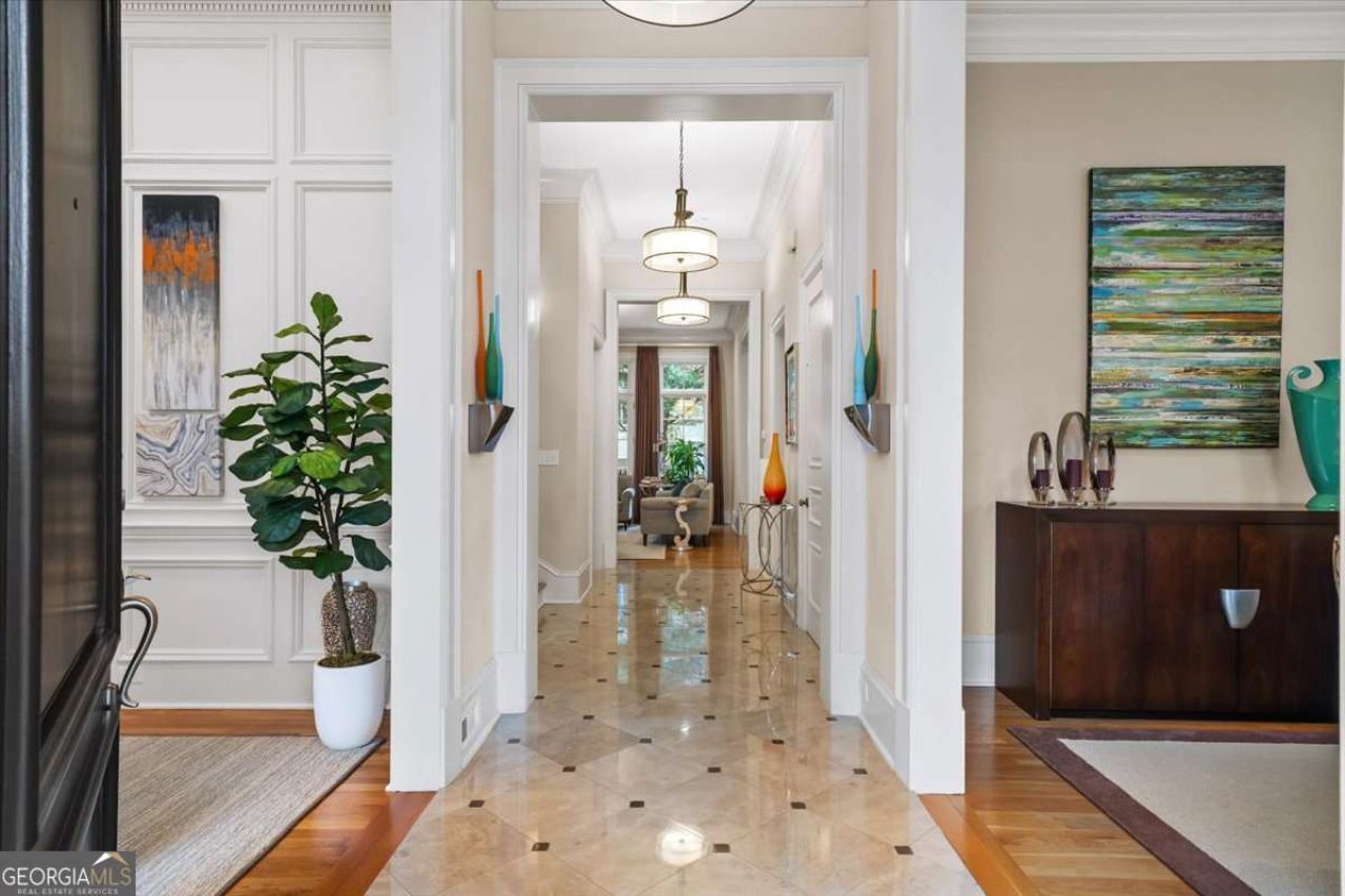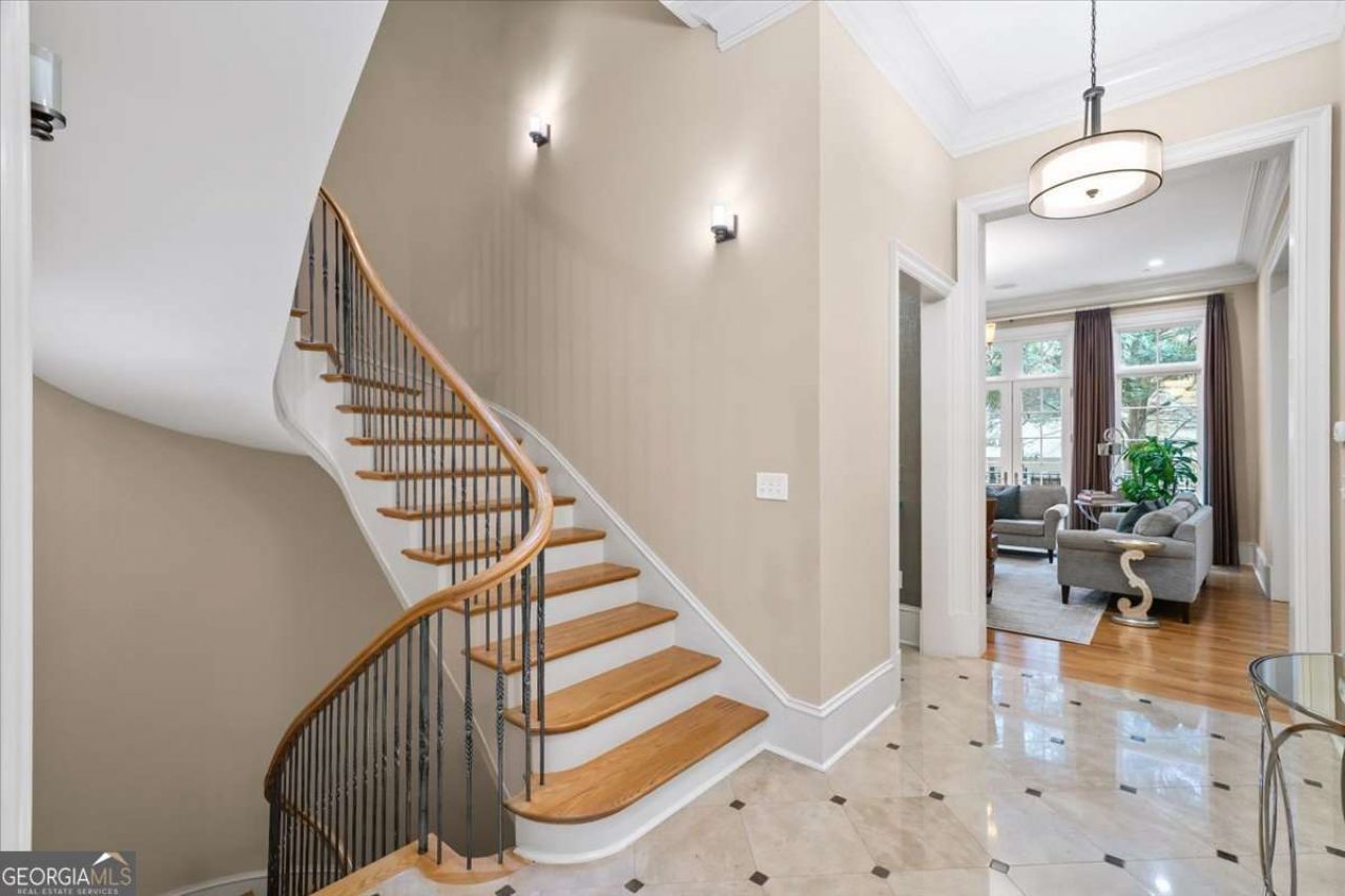Welcome to this extraordinary town residence-where pampered living and style meet in the heart of Buckhead at the Bellingrath. From the moment you step inside, it's clear this designer's residence is uniquely special! The grand marbled foyer, gorgeous moldings, 12' ceilings and exceptionally tall windows throughout the first floor are reminiscent of opulent Parisian homes of the Beaux Arts period. Flanking the foyer on one side is an elegant office/library/music room and on the other, a large, stylish dining room with adjoining butler's pantry. The dramatic curved atrium staircase that winds its way to all four floors is a show stopper but the convenience of an elevator makes daily life easy. The living room is bright and inviting, where a grand limestone fireplace takes center stage, and seamlessly flows to the heart of the home-the stunning, recently remodeled kitchen and bar. Here, you'll find exquisite finishes including a limestone hood, custom cabinetry, premium appliances, and curated stone surfaces that make both everyday cooking and hosting a true pleasure. The second level is devoted to a truly sumptuous primary suite. This private retreat features a comfortable sitting area with limestone fireplace, a custom office nook, large bedroom and a convenient coffee bar. Indulge in the exquisite his-and-hers spa-inspired bathrooms with a shared steam shower, along with boutique-worthy custom closets that are as functional as they are luxurious. The nearby laundry room has been thoughtfully refitted with custom cabinetry and refined finishes for effortless organization. The third level offers two additional ensuite bedrooms, each beautifully appointed, along with a cozy reading or office space loft overlooking the outdoor terrace and fireplace through dramatic floor-to-ceiling windows and French doors-perfect for work, entertainment, or quiet moments. A small kitchenette/laundry space adds more conveniences on this level. The terrace/lowest level adds even more versatility: space for an exercise room with adjoining full bath and an optional fourth bedroom or wine cellar or office. The 3-car garage, a true rarity in Buckhead, is equally polished, featuring custom closets, sleek flooring, EV charger and generous storage. All of this is set in a prime location close to everything that makes Buckhead a mecca for those seeking an upscale lifestyle, including restaurants, parks, shopping, and an easy trip to the airport-making this home as convenient as it is luxurious. This is a rare opportunity to live surrounded by elegance, comfort, and exceptional design. Don't miss it-homes like this are truly unforgettable.