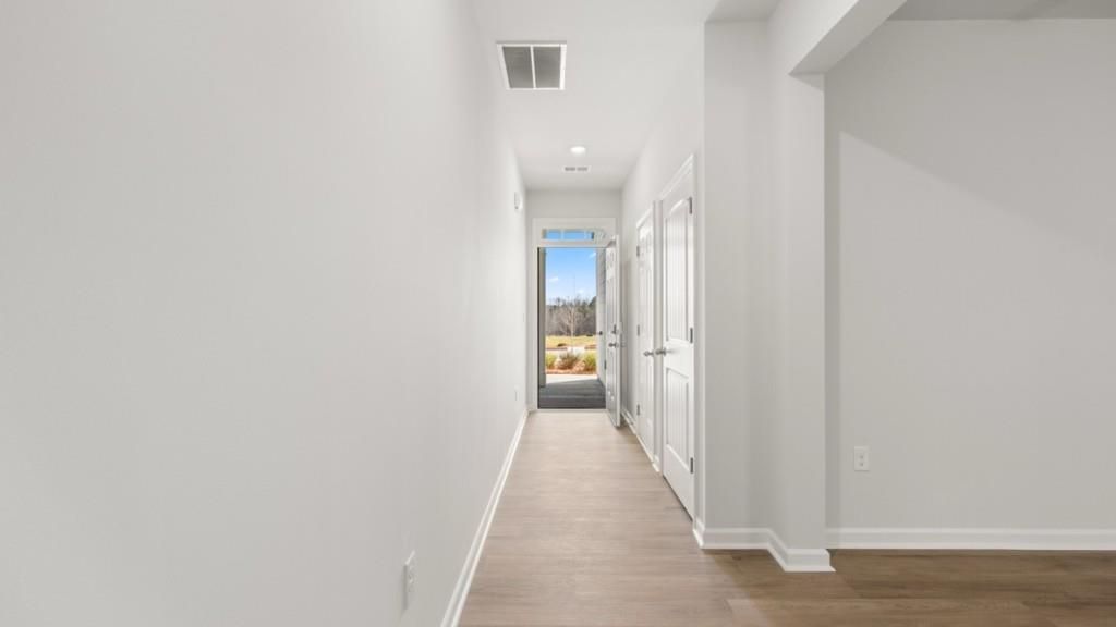 Welcome to 27 Berryville Drive in the Hughes Court community in Dawsonville, GA. Featuring the Sudbury plan, this 2-story town home features 3 bedrooms and 2.5 bathrooms in 1,877 square feet along with a 2-car garage. A long foyer welcomes you and leads into the open concept main living area. A large family room is the perfect place for family and friends to gather for a quiet night with a book or movie. The family room flows seamlessly into the kitchen with a center island, quartz counter tops, white shaker-style cabinets and stainless-steel appliances. A dining area directly off the kitchen provides space for a dining table and opens onto the back patio. There is also a half bathroom tucked away on the first floor. Upstairs, you'll turn from the landing into the primary suite. This spacious bedroom is complemented by the en-suite bathroom with separate tub and shower, dual vanity, water closet, linen closet and room walk-in closet. Across the landing you will be led into a loft area that is perfect for a game room, secondary living space or home office. 2 additional bedrooms, the laundry room and an additional bathroom with dual vanity round out the upper floor. Does 27 Berryville Drive sound like the perfect home for you? Then reach out to us at Hughes Court to schedule a tour of your future home in Dawsonville, GA.