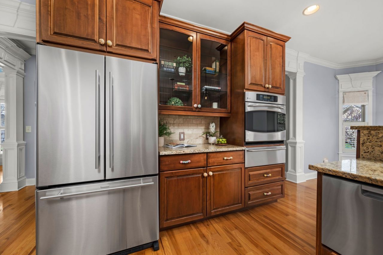 Experience refined living in this stunning 3,800 sq ft executive home with a front porch and newly updated enclosed back porch. The main level offers two bedrooms, including an updated primary suite, and a breathtaking great room with cathedral ceiling and extensive trim detail. Plantation shutters throughout add timeless elegance. The entertainer's kitchen shines with stainless steel appliances, updated dish drawers, and opens seamlessly to a cozy hearth room with gas fireplace. Upstairs, enjoy a spacious media room with wet bar, plus two bedrooms and a full bath. Relax year-round on the enclosed back porch overlooking the beautifully landscaped yard. Exterior highlights include irrigation, gas lanterns, and a new roof (2023). The intimate horseshoe neighborhood has 30 houses, street lights, sidewalks, and underground utilities. Location is everything! Publix or Krogers, Golds gym or Sports Com, soccer or baseball. No matter what you want, it's less than five minutes from this beautiful neighborhood located in North Rutherford County.