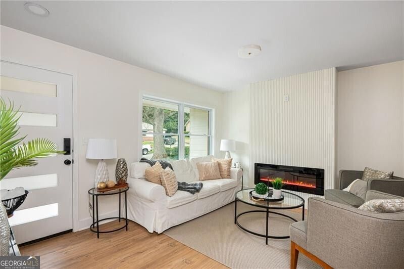 Ideally located on Atlanta's booming Westside, 2744 Marco Drive is an impressive renovation with modern flair. The stylish fa ade - featuring warm wood accents, black-framed windows, and a striking modern entry - sets the tone the moment you arrive, welcoming you to this 4-bedroom, 3-bathroom home. Step inside to an open-concept layout with views straight through to the backyard. A warm, inviting family room anchors the main living space with a stylish fireplace, flowing seamlessly into a beautifully designed kitchen boasting warm finishes, a kitchen island, and a dedicated dining area. French doors lead you out to a privately fenced backyard and brand-new deck - perfect for entertaining or unwinding in your own outdoor retreat. The primary bedroom offers serene backyard views, complemented by a modern ensuite with sleek finishes and a double vanity. Upstairs, a charming bonus room with its own private ensuite provides the ideal space for guests, a home office, or a flex room. Situated in the Lincoln Homes community, this home is just minutes from popular destinations including Vinings and Smyrna.