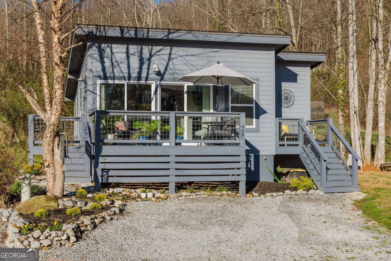 A thoughtfully designed mountain cottage awaits in the charming Maple Springs community just below the entrance to Black Rock Mountain State Park. This one-bedroom, one-bath home offers a comfortable and flexible layout with abundant natural light and soaring ceilings that create an open, airy feel throughout. The owner expanded the original footprint of the home with a generously sized bedroom and an adjacent flex room that could easily serve as a walk-in closet, yoga studio, home office, or additional sleeping area. The living spaces flow comfortably together, making the home feel larger than its footprint while maintaining the cozy charm of a mountain retreat. Outdoor living is a highlight here. Enjoy morning coffee or cool mountain evenings from the sitting porch, while two additional smaller porches provide quiet spots to grill or set up a cafe table. There's also a small creekside yard that's perfect for a firepit, sitting area or space to walk your furry companions. Located in the Maple Springs community just minutes from downtown Clayton, this home offers easy access to hiking trails, waterfalls, and outdoor recreation at Black Rock Mountain State Park while still being close to Rabun County's vibrant dining and shopping scene. Whether you're searching for a weekend escape, a full-time residence, or a low-maintenance mountain getaway, this inviting cottage offers a wonderful opportunity to enjoy life in the North Georgia mountains. Short term rentals are not permitted in Maple Springs.