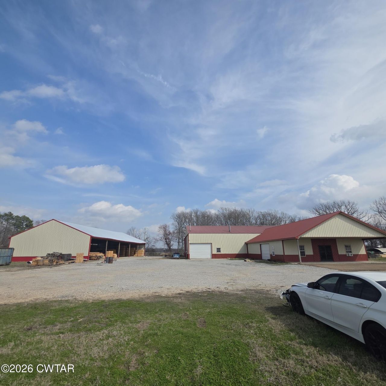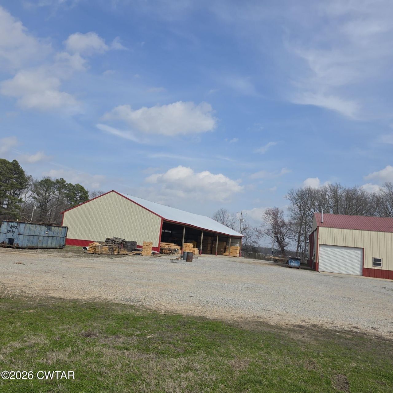 Originally a truss factory and still set up that way. The equipment can be purchased separately. Lots of outside room. Construction building is 11,000 sq ft with the rest in storage pole parns. Fenced in for security.