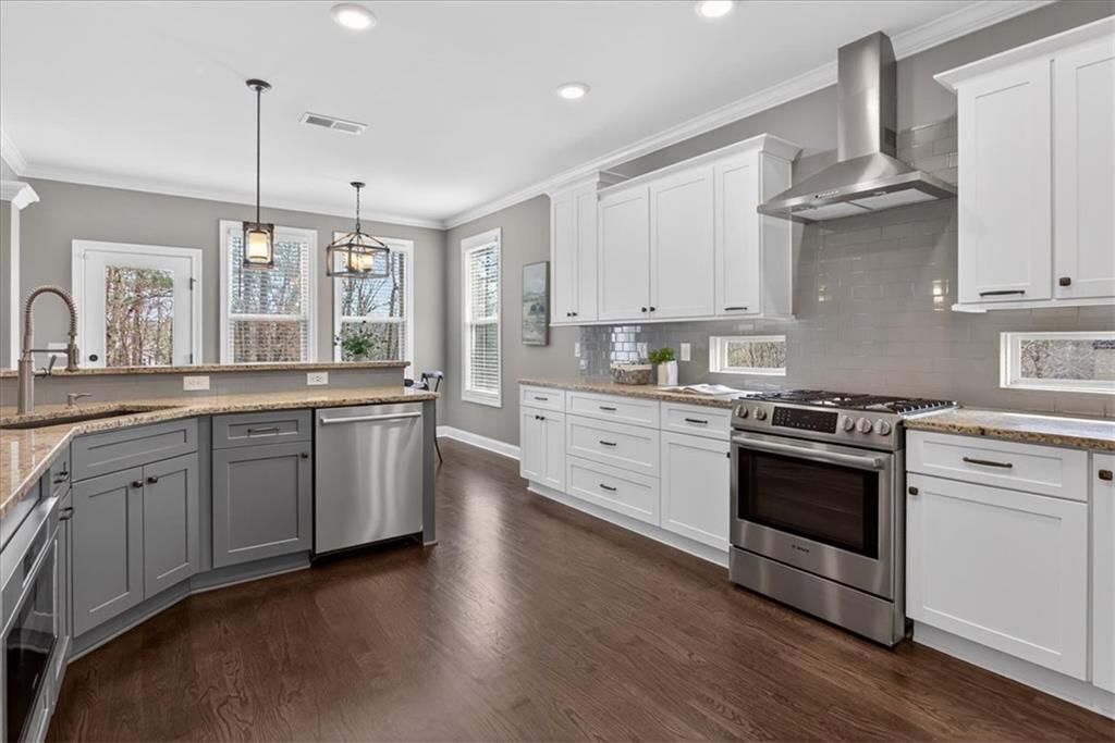 This Craftsman-style home is full of character and thoughtful upgrades ? the kind of home that just feels welcoming the minute you step inside. With 4 bedrooms, 3 full bathrooms, and an unfinished basement, there's plenty of space for everyone. Freshly refinished hardwood floors run through the main living areas, adding warmth and timeless style. The home also features crown molding and 5 baseboards throughout. The kitchen is the heart of the home, featuring white and gray cabinets, granite countertops, tile backsplash, upgraded gas range and vent hood. There's plenty of space to cook, gather, andconnect ? whether you're enjoying a quick breakfast in the eat-in area or hosting dinner in the separate dining room. The open family room features a tall, vaulted ceiling, beautiful stone gas fireplace, and wired for surround sound-the perfect spot to unwind at the end of the day. There is a bedroom on the mainfloor perfect for a guest room or office and a full bathroom with granite countertops and tile flooring. Upstairs, the wood double staircase adds classic Craftsman charm and leads to a spacious loft ? ideal for a second living area, playroom, or study space. The primary suite is a beautiful retreat with its own sitting area and a roomy ensuite bath featuring double vanities with granite countertops, a makeup counter, an oversized tile shower, and a large walk-in closet. Two additional generously sized bedrooms share a Jack-and-Jill bath with double vanities and granite finishes. The laundry room is practical and well-designed with wood cabinetry for extra storage. There is also a mud room perfect for a drop zone. The unfinished basement offers tons of additional storage with the opportunity to expand down the road. Outside, the backyard is ready for relaxing and entertaining with a deck, covered patio, and is fully fenced. There is an irrigation system and gas line to the deck. You'll also appreciate energy-efficient touches like cellulose insulation for the walls and attic, and solar roofing, along with smart features such as Alexa-compatible lighting and Smurf tube wiring. There is an oversized driveway with parking pad and 8-foot quiet garage doors for added convenience. Enjoy being close to the McKaskey Creek Campground, Lake Allatoona, and walking trails. Plus, just minutes from the interstate, shopping, and dining. This home truly has it all.