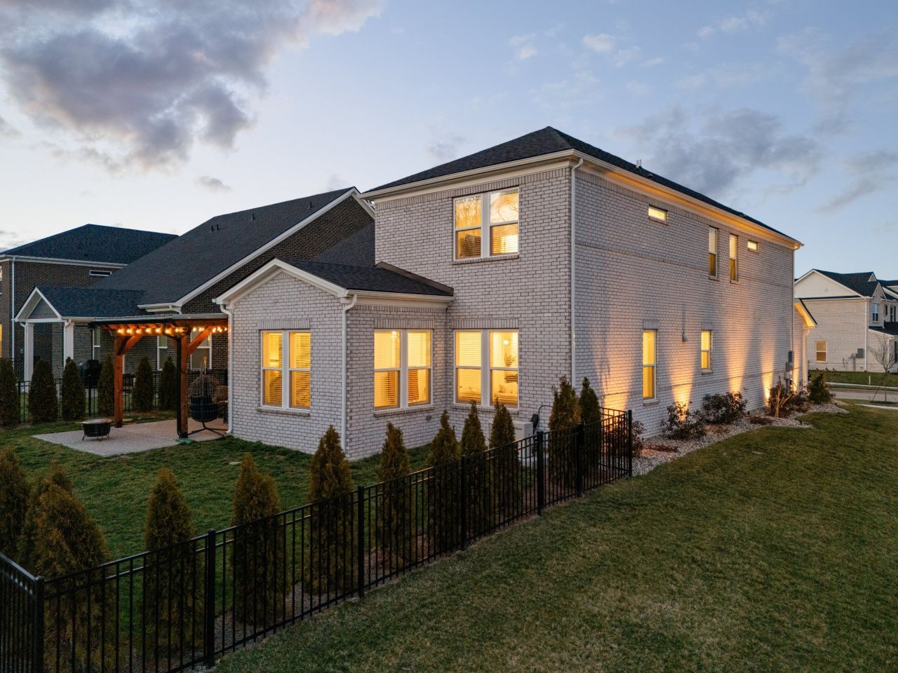 This thoughtfully designed home features a primary bedroom on the main level along with a first-floor study that can function as a fifth bedroom, offering flexibility for guests, work-from-home, or multi-generational living. Upstairs, you'll find three additional bedrooms and a spacious bonus room, ideal for a media room, playroom, or second living area.The open-concept layout is both functional and inviting, with the dining area flowing seamlessly into the kitchen-perfect for entertaining and everyday living. Abundant natural light fills the home, enhanced by a bright morning room off the great room that adds valuable additional living space and architectural charm.The gourmet kitchen is beautifully appointed with quartz countertops, stainless steel appliances, a custom wood hood, and designer finishes. Hard-surface flooring throughout the main level and tile in all wet areas provide durability and timeless style.Step outside to enjoy an extended patio with pergola, surrounded by privacy trees and maintained with a full irrigation system, creating an inviting outdoor retreat. The custom garage features epoxy-coated floors and added storage, offering both function and a polished finish.With flexible living spaces, quality upgrades, and exceptional natural light throughout, this move-in-ready home is designed to accommodate a variety of lifestyle needs.