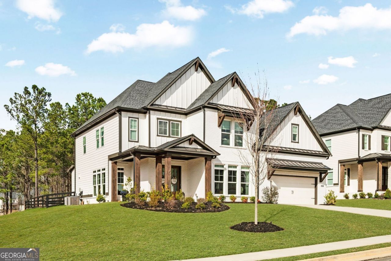 Better than NEW! This beautifully 5 bedroom, 4 full bath upgraded home offers style, comfort, and a dramatic two-story great room filled with natural sunlight that will WOW you. The great room includes one of a kind custom built-ins and wall of windows that overlook your private level backyard. You will fall in love with the open floor plan from the moment you entry the welcoming foyer. The floor plan is perfect for everyday living and entertaining, and includes a private office with custom double doors and an amazing oversized formal dining room. The gourmet kitchen features custom cabinetry, an oversized island, stainless steel appliances, eat-in breakfast area and plenty of space for gathering and enjoying this open floor plan that flows with sunlight. Upstairs, the primary suite boasts a large custom closet and a luxurious spa-like bath with double vanities, a soaking tub, and an upgraded shower. All secondary bedrooms are large and offer walk-in closets with plenty of closet and storage space. One bedroom on main level is the perfect bedroom, office or playroom. Additional highlights include built-in cabinetry, a custom mudroom, upgraded hardwood floors throughout, and a beautiful full bath on the main level. Conveniently located just minutes from Milton, Alpharetta, and Woodstock, this home offers the perfect blend of elegance, functionality, and location