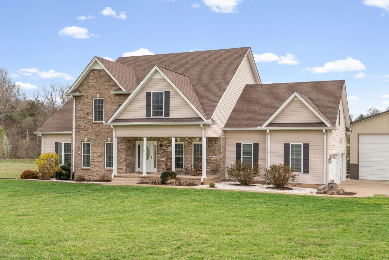 5 acres, 5 baths, FINISHED BSMT, plus a DETACHED SHOP. Concrete/Asphalt driveway lined w/ Leyland cypress & Crepe myrtles leading to the rocking chair covered front porch, a grand entry foyer w/ sand & finished hardwood flooring on the main level, arched openings to the impressive dining room & office. Gorgeous Living Room W/soaring ceiling & gas fireplace. The chef's kitchen is renovated & features an island w/ a gas cooktop & seating for 6, double ovens, granite countertops, ample cabinetry, farm sink, built-in beverage/wine cooler, upgraded stainless steel appliances, utility closet, & pantry. The kitchen is convenient to a partially covered back deck for grilling ease. Mud Room & 1/2 bath located off of the kitchen & spacious 3-car main level garage which features a utility sink & pedestrian door to the fenced backyard & playground. Upstairs you will find 3 spacious bedrooms & a flex room for the use of your choice. A stunning primary owner's suite w/ large sunken primary bathroom features a jetted tub, tiled shower, two walk-in closets, separate vanities, & toilet closet. Each bedroom has its OWN bathroom. The laundry room is upstairs offering more storage solutions & floored attic access . Basement: 4th bedroom and full bathroom, a living room/tv area/playroom, gym/recreation room area, storm shelter, & a pet room w/ pet door & washable walls. New '23 LVP in basement level. Covered & uncovered patio, HUGE 38x48x14 SHOP w/ car lift (negotiable) (3 bay front, 1 bay back) Holds an RV comfortably. 220V, cabinetry, & a pull-thru door on the back allows the true mechanic or car enthusiast to move vehicles out of the way w/ ease & park behind on the gravel pad. A lean-to off of the shop for storing other items. The HVAC Units were replaced in 2015 & 2018 .Smooth ceilings, gas heat, new lighting & carpet, new roof in 2023. County Taxes ONLY with an assigned fire department. Montgomery Central Schools located on one complex if applicable. Must See!