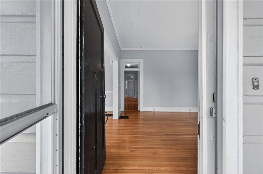 Enjoy your private retreat within walking distance to the great restaurants, shops and entertainment available in historic downtown Buford. Situated on just over an acre lot, this 1929 bungalow is welcoming and cozy, and combines period charm with modern convenience. The living and dining rooms feature tall ceilings and detailed woodwork and trim, as well as a new gas fireplace. The hardwood floors start here and extend throughout the main level of the home. A large sunroom is located just off the living room, and expands your living and entertaining space into a sunny, rear-round retreat. The kitchen retains much of the period charm, but it has been updated with granite counters and newer appliances. The hallway leads to a primary suite with updated ensuite bath, two spacious secondary bedrooms and an updated bathroom. There is a mudroom with storage closet at the rear entry. An unfinished basement provides additional storage, and a separate shed, complete with electrical service, provides flexible space for a workshop, craft room, home office or additional storage. A carport provides covered parking. Recent updates include roof, HVAC, water heater, gas fireplace, updated bathrooms, exterior paint, windows in sunroom, whole house plumbing repipe including drainlines (to existing sewer line from house). Just move in and enjoy! Convenient to Buford City Center, Buford City Schools, Lake Lanier, Mall of GA, and I85/316.