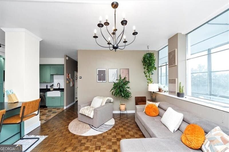 Discover this beautifully updated $40k in renovations Buckhead condo in a classic mid-century building, boasting a spacious 30-foot open-air sunroom balcony perfect for relaxing or entertaining. Inside, enjoy a gourmet kitchen, a primary bedroom with a walk-in closet and balcony access, a secondary bedroom, a dedicated office nook, and a flat HOA fee covering unlimited utilities and all building maintenance. Residents benefit from a full suite of amenities, including a saltwater pool, 24/7 controlled access, and highly rated schools (7-9). This gem offers serene, private living with effortless access to Buckhead Village Phipps Plaza & Lenox Square for premier shopping, dining, and entertainment-just a short stroll away! The kitchen shines with top-of-the-line stainless steel appliances, sage green shaker-style cabinets, honed premium granite countertops, a herringbone white tiled backsplash, a matte black and copper-accented faucet, an oversized sink, corner shelves for ample storage, and a generously sized pantry. Rich dark walnut stained hardwood floors flow throughout, complemented by wall-to-wall windows that flood the home with natural light year-round. The open-concept layout seamlessly connects the kitchen to a sun-drenched family room via wall-to-wall windows, while a hallway ensures privacy for the two spacious bedrooms. The bathroom impresses with a large vanity, high-arc faucet, expansive framed mirror, space-saving ventless washer-dryer, and elegant white tiled floors. Step outside to one of the city's largest communal green spaces-over four acres of lush landscaped grounds with mature trees, ideal for summer barbecues and poolside social gatherings. For active lifestyles, nearby attractions include Frankie Allen Park, Chastain Park, Bobby Jones Golf Course, and the Atlanta BeltLine, offering fields, tennis courts, pools, and golf. Explore the scenic Swan House and Gardens, savor upscale experiences in Buckhead Village, or shop conveniently at Whole Foods, Publix, or Trader Joe's, with charming coffee shops nearby. Enjoy abundant parking, an oversized storage unit. Embrace hassle-free, luxurious living tailored for you and your family for years!