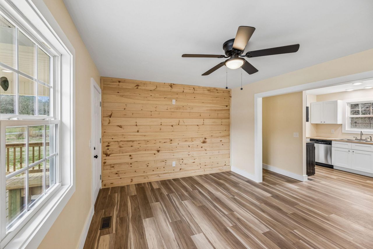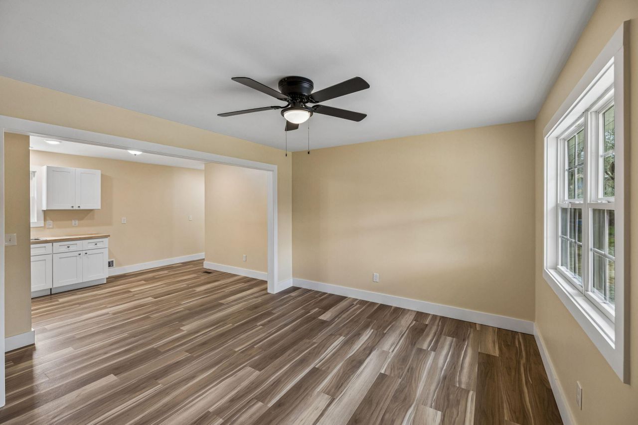This fully renovated home is perfect for anyone looking for a solid, move-in-ready property where all the big work is already done. Featuring 3 bedrooms and 2 full bathrooms, the layout also includes a versatile bonus room that easily serves as a 4th bedroom or home office. The interior has been completely refreshed with durable LVP flooring throughout and a brand-new kitchen featuring new cabinets and butcherblock countertops. You can move in with total peace of mind knowing the home features a new roof, new vinyl siding, and a new heating and air system. The living space extends outdoors with a new covered front porch and a new back deck, offering plenty of space for relaxing or entertaining. This is a clean, honest, and updated home designed for low-maintenance living for years to come. Seller is adding a backsplash to kitchen, exterior shutters, as well as application of stain to feature wall.