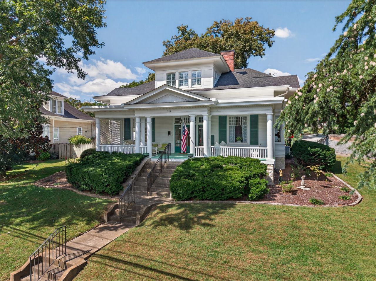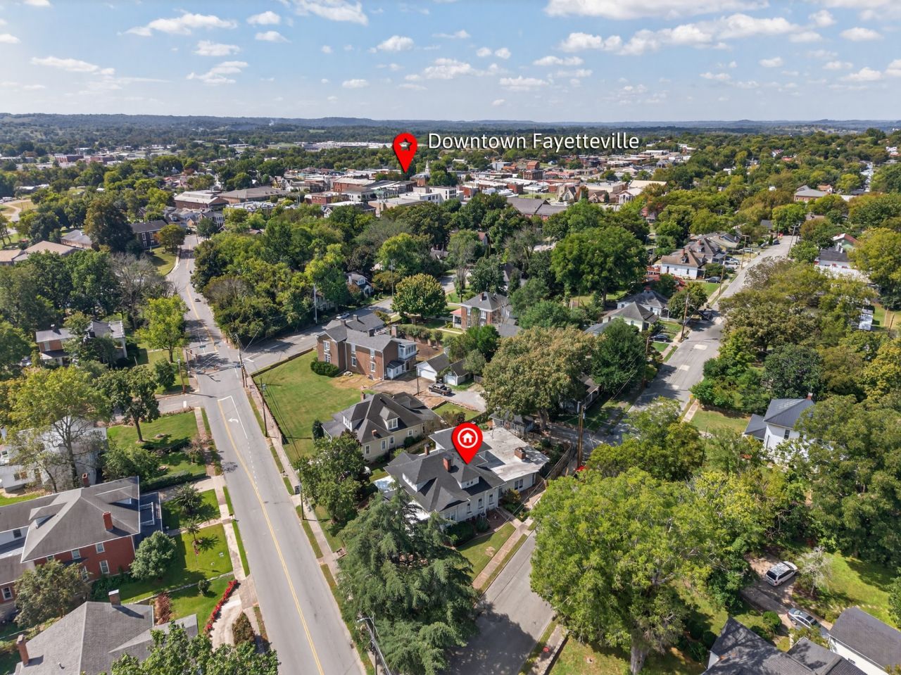 Welcome to 310 Mulberry Avenue, a stunning Colonial Revival home on one of Fayetteville's most historic and sought-after streets. Situated on a corner lot, this 5,000+ sq ft home offers 5 bedrooms and 4 bathrooms, blending timeless Southern charm with modern luxury.Over $110,000 in repairs, improvements, and restorations have been completed, thoughtfully preserving the home's historic character while enhancing comfort and functionality.Step onto the wide front porch featuring a traditional southern blue ceiling, believed to bring luck and keep away haints-perfect for rocking chairs, morning coffee, or sweet tea at sunset. Inside, the grand entryway welcomes you with soaring ceilings, gleaming hardwood floors, and original pocket doors that provide privacy between the Library/Den and Formal Dining Room.The gourmet kitchen features an acacia butcher block island, Thermador gas cooktop with lava briquettes and griddle, double ovens, Sub-Zero refrigerator, granite countertops, and a Butler's Pantry with additional prep space, fridge, and storage-ideal for entertaining and family gatherings.The main-level Primary Suite offers a spa-like bath with marble floors, tiled walk-in shower, and the original claw foot tub. The 20x15 custom walk-in closet with 10-foot ceilings and wood flooring is one of the most impressive closets in Lincoln County.Upstairs includes three additional bedrooms, two baths, and a charming secret room. The Florida room features a second fireplace and kitchenette, creating another cozy gathering space.Outside, the **detached garage-formerly the carriage house-**reflects the property's historic roots. Conveniently located with easy access to Highway 64 and just minutes from I-65 and I-24, this home offers historic elegance with modern convenience.