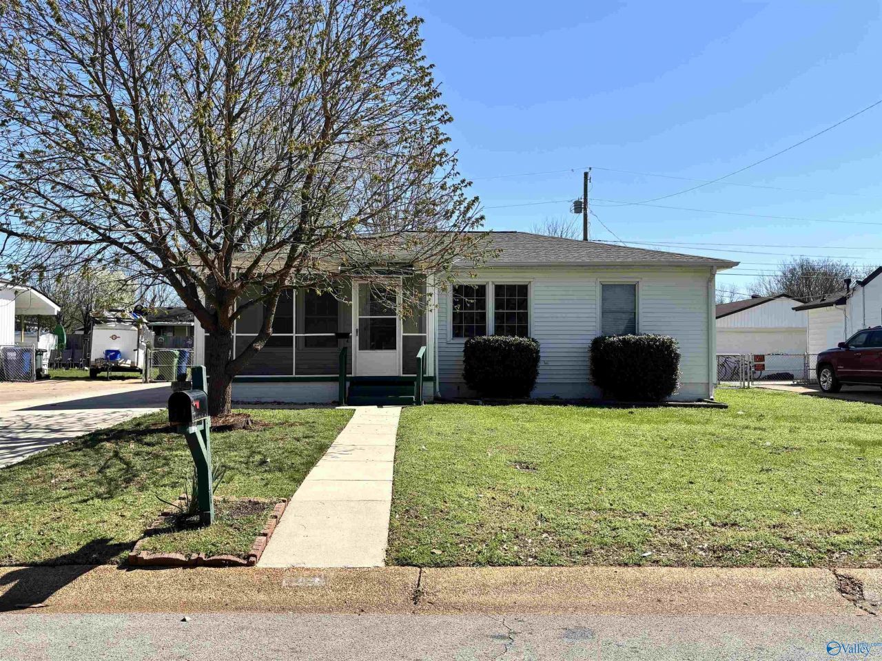 Adorable, well-maintained home featuring numerous upgrades throughout. Highlights include a beautifully remodeled bathroom and durable LVP flooring throughout the main living areas. Freshly painted and move in ready! Updated kitchen, HVAC, vinyl windows. Enjoy relaxing on the inviting screened-in front porch with a ceiling fan?perfect for warm summer evenings. The home also offers a fenced backyard, a spacious back patio ideal for outdoor grilling and entertaining, and an Amish-built storage shed that provides excellent space for lawn equipment and additional storage. Conveniently located near Redstone Arsenal, as well as a variety of shopping and dining options.