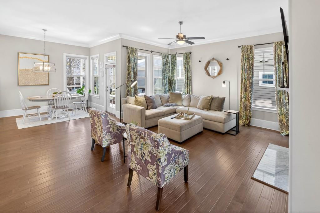 Welcome to this beautifully appointed Craftsman-style home on an interior lot, located across from Wills Park and walking distance to downtown Alpharetta's dining, shopping and entertainment. Bright and inviting, the home features hardwood floors throughout, open concept and 3 FULL levels of living. Entertain in the light-filled dining room framed with tasteful shiplap, then flow into the ever-popular open floor plan where the kitchen and family room blend seamlessly. Large windows and 10+ ft ceilings. Step out from the family area to a covered porch that overlooks a private, fenced side yard perfect for outdoor relaxing, grilling, or play. The beautiful kitchen features: white cabinets, quartz counters, farmhouse sink, breakfast bar, walk in pantry & stainless steel appliances. Upstairs you'll find your grand owners suite with tranquil sitting area/office space, his and her custom walk-in closet systems, and oversized stunning shower. Two additional spacious bedrooms, jack-and-jill bath with built-in storage shelves and laundry room situated on this floor as well. Venture to the third level, complete with a generous sized bedroom, full bath and an additional loft/flex space. The HOA maintains the lawn and landscaping, allowing for ease of lifestyle living, preserving the upkeep of the yard around you. The location is impeccable- walking distance to shops, parks and dining, close to GA-400, incredible schools and the refined Alpharetta living. Don't miss this rare opportunity to call this place home!