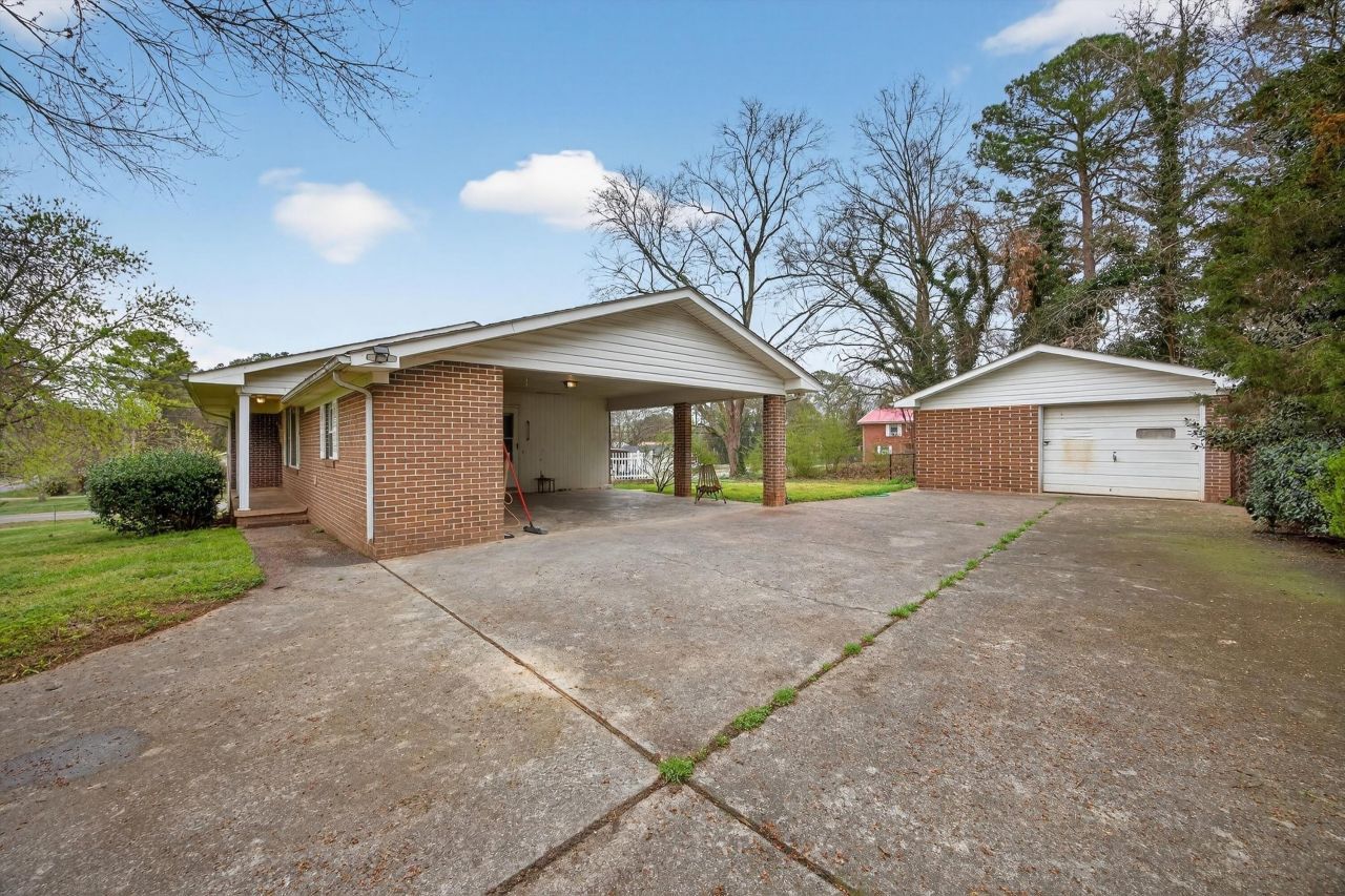 This brick home sits on a spacious .83-acre corner lot and is full of potential! The main level features 3 bedrooms and 2 bathrooms, with a partially finished 4th bedroom and bath in the basement that includes its own private side entrance--perfect for guests, extended family, or additional living space. Outside you'll find a 2-car carport, a detached garage/storage building, and an amazing yard with plenty of room to enjoy. A set of concrete steps leads up to a pavilion area that could be brought back to life with a little TLC. If you're looking for space, character, and the opportunity to make a home your own, this one is packed with possibilities!