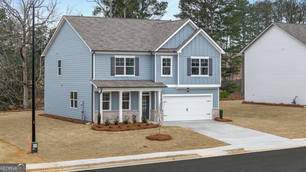 Welcome to 318 Thompson Ridge Lane, a New Construction home with a beautiful lake view in the beautiful Thompson Ridge Community of Dallas, GA. Thompson Ridge is conveniently located near shopping, dining, Bentwater Golf & Country Club, and the Seven Hills community. Featuring the Hanover floorplan, this homesite offers 4 bedrooms, 2.5 bathrooms, a 2-car garage, and 2,804 sq. ft. of living space. This thoughtfully designed home delivers the space and flexibility today's buyers are looking for in Paulding County. Step inside to a welcoming foyer, ideal for a statement table or gallery wall. Just off the entry, you'll find a private office, formal dining room, and convenient half bath. The heart of the home is the open-concept living area at the rear, featuring an oversized family room, dining area, and a well-appointed kitchen with abundant countertops, stainless steel appliances, and a large corner pantry perfect for everyday living and entertaining. Upstairs, a versatile loft provides additional living space for a media room, playroom, or home office. The primary suite offers a spacious bedroom, dual vanity bathroom, separate tub and shower, and a generous walk-in closet. Three secondary bedrooms, a full bathroom with double vanity, and the laundry room complete the second level. Does the Hanover at 318 Thompson Ridge Lane sound like the perfect fit for you? Then contact us at Thompson Ridge in Dallas, GA and let us give you a tour!
