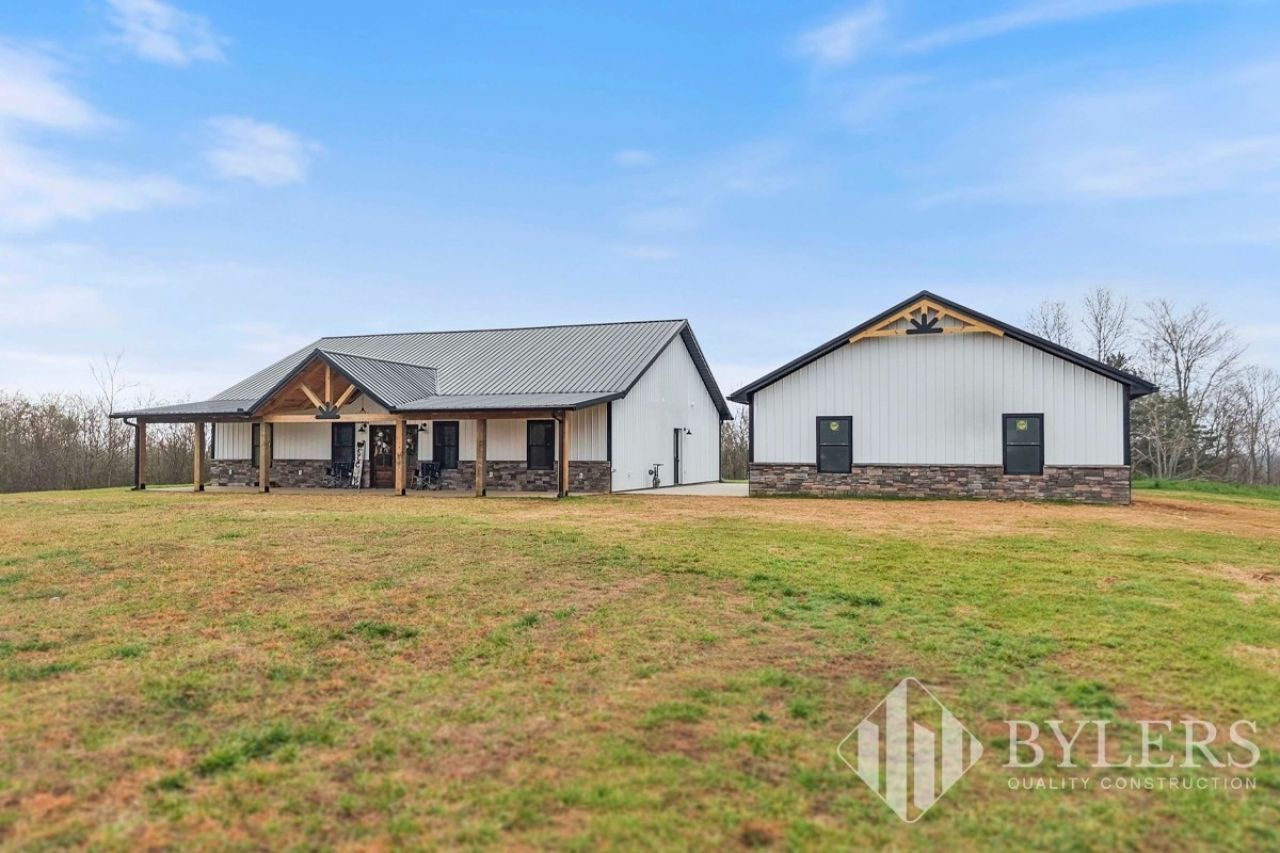 Scenic & Secluded Sanctuary overlooking Centerville! Welcome Home to this beautifully built 2,000 sq ft Farmhouse style 3bdrm/2bath BARNDO on 45.23 Acres w/Detached Garage. This home blends rustic charm with laid-back country living. Perched high above the scenic Duck River and overlooking the timeless Town of Centerville, TN. This tract offers Plenty of Open Field for Farming or Furbabies, yet surrounded by Heavily Wooded Rolling Terrain. Imagine winding past the pond, and down the driveway to your Perfect Getaway called 'HOME! Step into the open great room with vaulted ceilings and a stunning shiplap and stone fireplace wrapped in a heavy beam mantle. The kitchen is straight out of a farmhouse dream with shaker-style white cabinetry, butcher block countertops, subway tile backsplash, Stainless Steel Appliances, a bold black built-in range hood, and a shiplap-accented island. A walk-in pantry with a stained pine door adds warmth and character. The spacious primary suite offers a walk-in closet and a beautifully tiled shower with subway tile walls and glass door. Granite countertops, shaker cabinetry, and durable LVP flooring throughout the home keep things both stylish and practical. Outside is where this one really shines...Enjoy a 500 sq ft covered front porch with tongue-and-groove ceiling, gorgeous stone accents, a spacious covered back porch, and a wide-open concrete patio breezeway connecting to the 1,200 sq ft detached 2-car garage. This property allows you room to spread out and enjoy true country living.