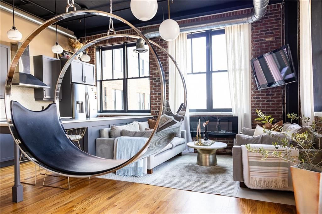6 MONTHS HOA FEES PAID by the seller!!! Stunning sought after corner unit at Buckhead Village Lofts! This exquisite industrial loft/condo blends character and modern design with exposed brick walls, soaring 10ft ceilings, oversized windows, and beautiful hardwood floors throughout. Creative design elements make this home truly special, including vibrant hand-painted hallway murals that add personality and artistic flair. The bright open-concept layout is filled with natural light and flows seamlessly into a sleek modern kitchen featuring stainless steel appliances, stylish cabinetry, and a spacious island perfect for entertaining. The statement suspended lounge chair creates a fun and relaxing focal point in the living space?perfect for unwinding after a long day. This 2 bedroom/2 bathroom condo offers flexible living. Primary bedroom with barn doors and ensuite bath with separate tub/shower and double vanity. Secondary bedroom featuring a Murphy bed, allowing the space to easily function as a home office or additional bedroom. New windows add comfort and efficiency while maintaining the loft's bright, airy feel. French doors will lead you outside to your private balcony with great views, the perfect spot to enjoy morning coffee or relax in the evening. With its blend of industrial charm, modern finishes, and artistic character, this condo offers a one-of-a-kind living experience. Located in the heart of Buckhead walking distance to dining, shopping, and entertainment. Gated/secured parking, pool, gym, storage room, dog park, and 24 hr concierge provide the best amenities. Unit comes with a storage locker, 1 garage parking spot (others typically available for rent). Guest parking out front makes entertaining friends a breeze!