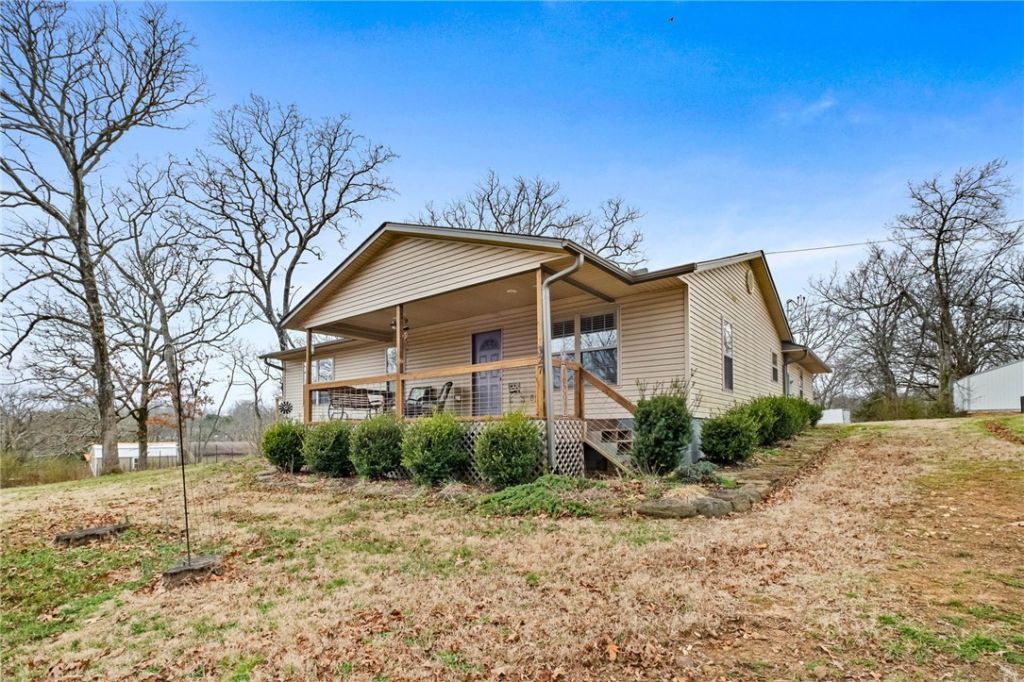 Fall in love with this quaint home just outside the city where you can escape the everyday hustle and bustle while still enjoying convenient access to I-49, just 8 minutes away. Located approximately 30 minutes to Fayetteville and about 45 minutes to Fort Smith, this property offers peaceful surroundings with an easy commute. The home features an open living area, spacious kitchen, and an inviting front porch perfect for relaxing and taking in the scenery. The yard is fenced with hog wire, providing space for pets or outdoor enjoyment. Refrigerator, washer, dryer, and a deep freezer located in the garage will all convey with the home. The septic system is permitted for one bedroom (1,000 gallon tank). Seller states additional leach lines were added after purchase to help balance the system.