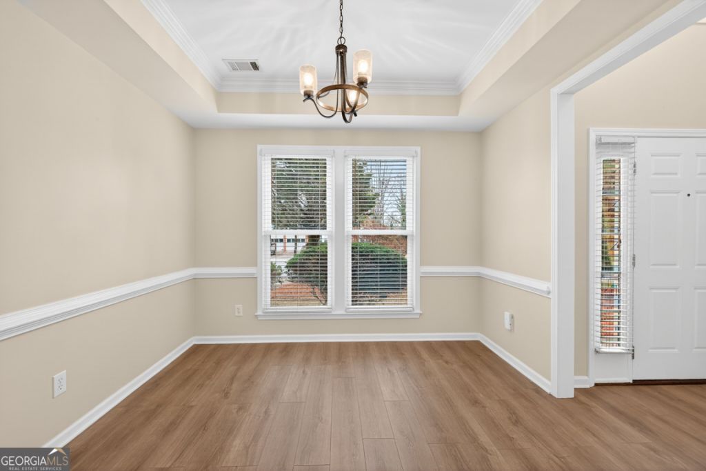 Move-in ready and freshly updated, this 4-bedroom, 2.5-bath home in Peachtree Corners' sought-after Avocet swim and tennis community delivers the space, function, and location today's buyers are looking for. Step through the front door of 3330 Avocet Court and the new waterproof wood plank flooring installed in March 2026 flows through the foyer, living room, dining room, family room, and hallway, giving the main level a warm, natural feel. A powder room on the main level adds everyday convenience. The kitchen features granite countertops, white cabinetry, tile backsplash, gas range, pantry, and an island with generous prep space, all open to the breakfast area and fireside family room. Upstairs the primary suite features a tray ceiling, new double vanities, garden tub, separate shower, and walk-in closet, plus three additional bedrooms including a fourth with closet that works well as a home office, media room, or guest suite. A bright 12x20 tiled sunroom, not included in the listed square footage, overlooks a private wooded backyard and opens to a patio and level yard. The roof was replaced approximately two years ago and the HVAC was recently serviced. Avocet offers a community pool, tennis courts, playground, and sidewalks, all just minutes from Peachtree Corners Town Center, The Forum, and the Curiosity Lab innovation district, with convenient access to GA-141, I-85, and I-285. Zoned for Berkeley Lake Elementary, Duluth Middle, and Duluth High School.