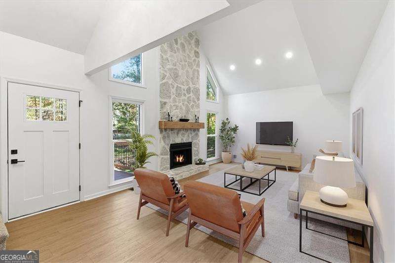 PRICED TO SELL!! MUST SEE INSIDE! Welcome to this like-new, completely renovated home that perfectly blends modern comfort with serene country living. Nestled on 1.79 private acres, this 4-bedroom, 4-bath residence offers an open, airy floor plan filled with natural light and high-end finishes throughout. Step inside to a bright 2-story living room with a stunning floor-to-ceiling stone fireplace, overlooked by an upstairs loft. The gourmet kitchen is a chef's dream, featuring brand-new stainless steel appliances, quartz countertops, a large island, and plenty of space for entertaining. The kitchen and dining area flow seamlessly to the oversized back deck with peaceful views of the private backyard. The main level offers a spacious primary suite with a luxurious ensuite bath boasting dual vanities, a beautiful large tiled shower, and quartz counters. Two additional bedrooms and a full hall bath complete the main floor. Upstairs, you'll find another bathroom and generously sized bedroom with a huge walk-in closet-perfect as a second primary suite, fourth bedroom, or even additional living space. The finished basement provides even more flexibility with a large bonus/media room, full bathroom, and a beautifully designed laundry/mudroom conveniently located off the large two-car garage. With additional large shed in the backyard this home offers plenty of room for all your storage needs. This home has been thoughtfully updated from top to bottom: freshly painted inside and out, all new carpet and LVP flooring, new decks front and back, brand-new architectural roof, new gutters, all new energy-efficient windows, all new stainless steel appliances, plus fully renovated kitchen and bathrooms. Located just minutes from the Atlanta Yacht Club and Galt's Ferry Public Access at Lake Allatoona, you'll enjoy the best of lake living with easy access to I-75. Downtown Acworth and Downtown Woodstock are also close by, offering fantastic shopping, dining, and entertainment. Here, you'll find the perfect blend of privacy, convenience, and modern living.