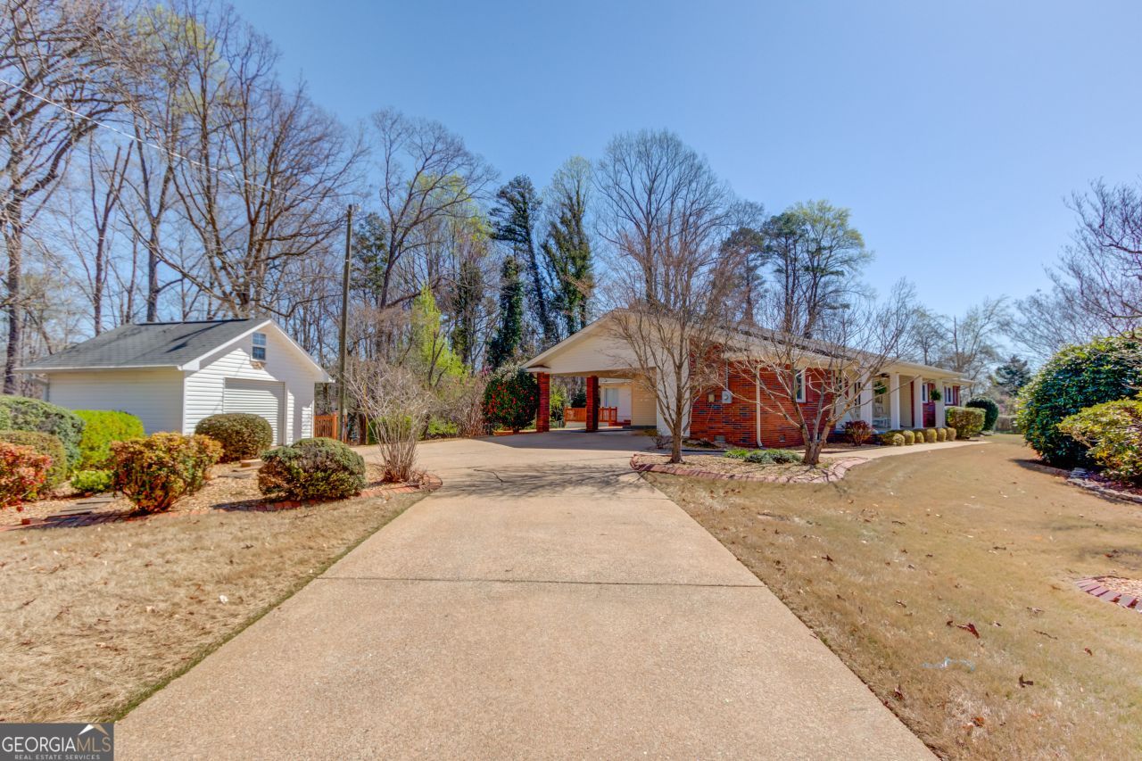WOW! Where privacy meets space and tranquility. Nestled on 1.7 acres just minutes from Lake Lanier rowing venue, this exceptional ranch offers 4 bedrooms and 3 baths with 3000 sq feet. The open floor plan has an inviting layout with an oversized kitchen and laundry room. Not only one but two family rooms, one with built in bookcases and a nook for your office or computer. So much storage, including an oversized outbuilding AND a separate workshop. Boat ramp less than 1/4 mile away. Enjoy privacy while remaining close to the water, recreation and everyday conveniences.
