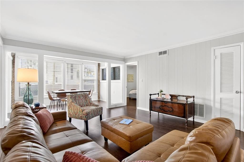 Welcome to 346 Carpenter Dr NE, a well-maintained 2 bed, 2 bath condo offering 1,136 square feet of comfortable living space in a prime Sandy Springs location. Built by Frank Lloyd Wright apprentice, Robert M. Green, Laurel Grove was designed as a departure from typical apartment complexes, focusing on structures that utilized horizontal lines, natural materials like stone and brick, and an intensive focus on interior-to-exterior connectivity. From the moment you walk in, you'll appreciate the natural flow of the space and feel Green's intentional design.The living area provides an open setting for relaxing and features a large den area, perfect to be used as an office, gym, or playroom, and the separate dining area with floor to ceiling windows is bathed in natural light. The updated kitchen offers functional workspace and storage, and is flanked by a huge laundry/pantry with tons of storage. The primary bedroom features a large walk in closet and en suite with double vanities and stand up shower. The second bedroom has an en suite with a shower/tub combo and a vanity with plenty of storage.Step outside and enjoy access to the community pool, perfect for unwinding on warm Atlanta days. The location truly stands out--with easy access to I-285, commuting is a breeze, and you're also just minutes from City Springs, restaurants and retail, and the soon-to-be-completed Hillcrest development.Zoned for Riverwood International Charter School, this home offers convenience paired with accessibility to local amenities. Whether you're looking for low-maintenance living or a well-positioned home close to everything, this condo delivers comfort, location, and lifestyle in one inviting package.