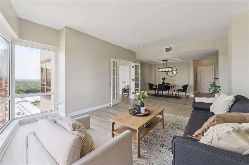 Experience the epitome of luxury in the heart of Buckhead Heights, one of Atlanta's most prestigious neighborhoods. The Oaks at Buckhead, a 30-story high-rise, boasts four rooftop sun terraces that offer an unparalleled perspective of the city. Its unique architecture allows for corner units with wraparound views that are truly spectacular.This 15th-floor beauty features a recently renovated two-bedroom, one-and-a-half-bathroom condo with views at every turn. Residents of this full-service building enjoy resort-style amenities, including 24/7 security, concierge service, an onsite property manager, a dedicated building engineer, a gated and secure parking deck with deeded parking space, a business center with Wi-Fi, printing, and a sophisticated private conference room. The premium fitness center boasts spectacular views, complete with a relaxing sauna.A private, secure storage unit is also included in the condo, an incredibly rare and coveted feature in this building. Outdoor entertaining features a poolside pavilion equipped with gas grills, a substantial pool, and a hot tub. The elegant club room offers indoor entertaining with a large full kitchen, a big screen TV, a massive dining table, an elegant sitting area, and several patio dining tables with views of the beautifully landscaped courtyard, which includes a gazebo, veranda, and walking paths.On-site guest suites are available for visiting family and friends, complete with a bedroom, a full bathroom, a kitchen with secured gated parking. Nestled just steps from upscale shopping and dining, Phipps Plaza, Lenox Mall, Whole Foods, Trader Joe's, Publix, Target, and many more cafes, the Oaks at Buckhead offers easy access to Marta and GA-400. Don't miss your chance to live the dream in one of Atlanta's Premier Communities, where luxury, privacy, and security come together!
