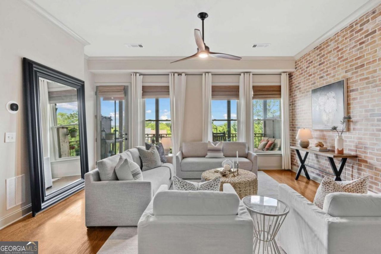 Come live the lifestyle you've been dreaming about in Downtown Woodstock! Welcome to this stunning 2-bedroom, 2-bathroom condo in the highly sought-after Chambers Street building in the vibrant core of Downtown Woodstock -- ranked as one of Georgia's best places to live! This beautifully appointed condo features soaring ceilings; tons of natural light; a full suite of stainless steel kitchen appliances; new HVAC; and custom feature walls that add warmth and character to the open-concept great room and dining area. The views from the balcony patio are absolutely to die for, and will serve as the perfect outldoor living space you can retreat to even while living in the heart of it all. Whether it's morning coffee; a mid-day work-from-home conference call; or an evening cocktail admiring the beautiful views, this patio may end up being your absolute avorite space of this gorgeous home. Enjoy an easy & convenient lifestyle with restaurants, coffee shops, brewries, boutique shopping, and live music venues just steps from your front door. Tucked away behind the building, you'll also find a private amphitheater, serene park space, and cozy firepits - plus access to the residents-only, resort-style pool. The condo includes two deeded parking spaces in the gated parking lot, providing ultimate convenience. Top-rated Cherokee County schools, with easy access to I-575, Woodstock Outlets, wineries, and scenic trails. The brand-new Downtown Woodstock parking deck makes it easy for your guests to visit. Whether you're looking for a full-time home, second property, or an excellent rental investment, this condo checks every box. Schedule your private tour today and experience everything Downtown Woodstock living has to offer!