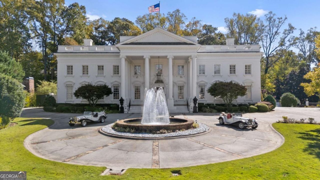 The Atlanta White House - A Presidential Masterpiece Reimagined. Commanding attention from the moment it comes into view behind its private gates, the Atlanta White House presents an unprecedented opportunity: two complete residences totaling over 20,000 square feet of interior living space across just under 3 private, manicured acres. The estate includes the primary residence and a fully independent seven-bedroom guest home - a subtle nod to the West Wing - creating a rare dual-address compound designed for grand living, extended family, or sophisticated multigenerational use. Commissioned by a visionary builder who sent artisans to Washington, D.C. to study the original White House firsthand, this estate was conceived as an architectural homage. It mirrors the neoclassical grace, symmetry, and formality of its inspiration while embracing the craftsmanship expected of a true legacy property. The result is a residence that feels both monumental and intimate - an enduring statement of heritage and artistry. The main residence offers six bedrooms and eleven baths, while the guest residence adds seven bedrooms and six baths, dramatically expanding the estate's capacity without compromising privacy. The facade, framed by Corinthian columns and classical detailing, establishes a rhythm of strength and grace. Inside the main house, a grand foyer sets the tone with an elegant statement staircase, intricate ceiling murals, and a custom chandelier, all supported by a discreetly integrated home elevator that provides convenient access to every level. At the heart of the primary level is the home's most defining space - its Oval Office, featuring the Presidential Seal displayed prominently on the ceiling and a custom desk crafted by the same manufacturer who built the President's Resolute Desk. Modeled after its namesake in Washington, this room was created for reflection, respect, and meaningful conversation, anchored by a stately fireplace that reinforces its dignity and purpose. The formal dining room is draped in luxurious fabrics and gold accents, designed for ceremonial entertaining. Nearby, the parlor and piano salon rise through two stories of glass with sweeping views of the pool and gardens. An oversized double fireplace, shared with the adjoining family room, balances architectural drama with warmth. At the center of the home lies the grand family room and kitchen, featuring coffered ceilings, rich wood detailing, a fireplace, and abundant natural light from a wall of windows and an oversized bay window framing the eat-in area. The primary suite occupies its own wing with dual seating areas, a fireplace, an oversized spa-like bath, and a hand-painted mural. Additional bedrooms throughout the home draw inspiration from the Queen's Bedroom and Lincoln Bedroom, each crafted with character and grace. On the terrace level, the estate becomes a private world of entertainment: a ballroom, theater, sauna, and a moody game lounge with billiards and bar seating reminiscent of a classic speakeasy. Beyond the interiors, the rear elevation reveals breathtaking symmetry. Twin staircases descend from the terrace to manicured gardens, an oversized pool and Jacuzzi, and a dedicated pool house featuring an outdoor kitchen and an additional half bath, creating a setting ideal for private events and large-scale entertaining. While its interiors capture old-world artistry, the estate is supported by tight security and private gates, ensuring disc